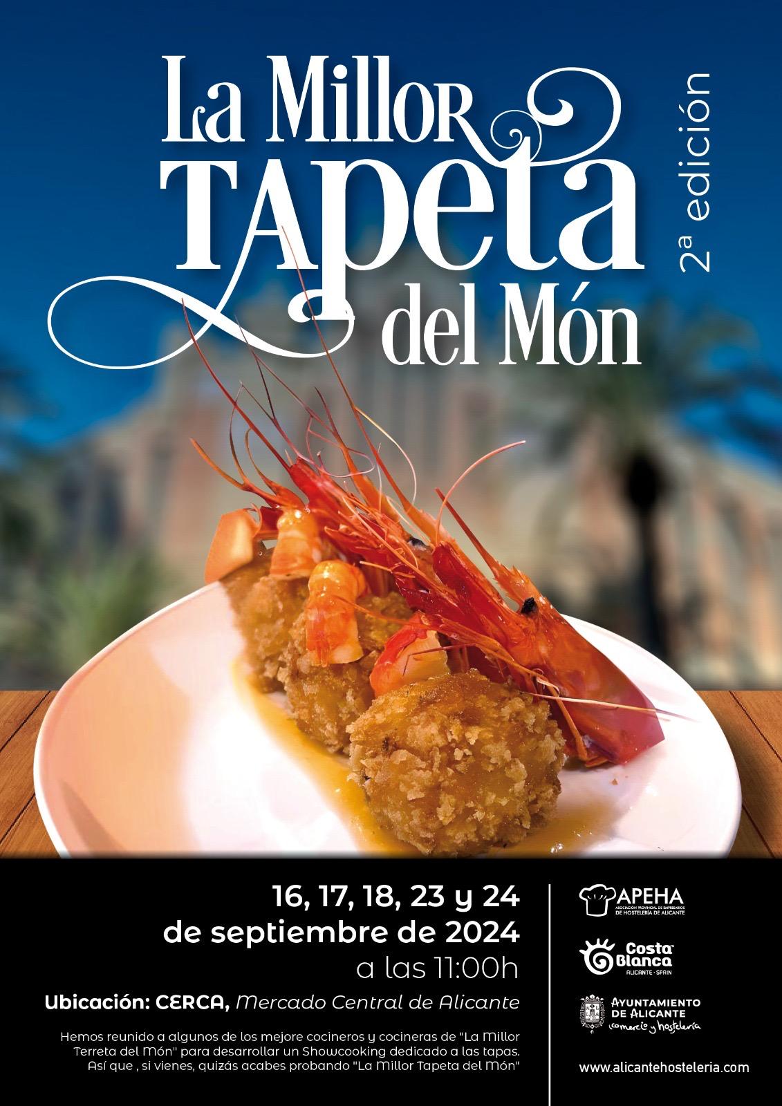 Las cocinas del Centro de Recursos de Consumo del Ayuntamiento de Alicante acogen este mes de septiembre en el Mercado Central las segundas jornadas gastronómicas de ‘La millor tapeta del món’ que van a estar abiertas al público para que las puedan degustar gratuitamente y serán elaboradas por los mejores chefs de la provincia de Alicante. La cita es el próximo 16,17,18,23 y 24 de septiembre a partir de las 11 horas.