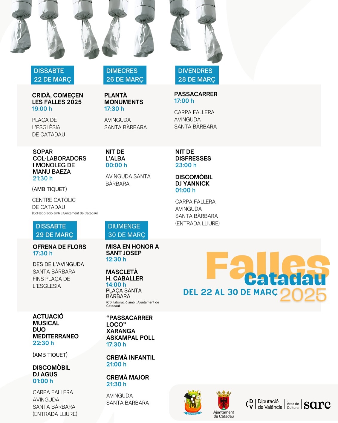 En Catadau también celebran las Fallas con la Asociación Cultural Falla de Catadau. Esta es su programación.