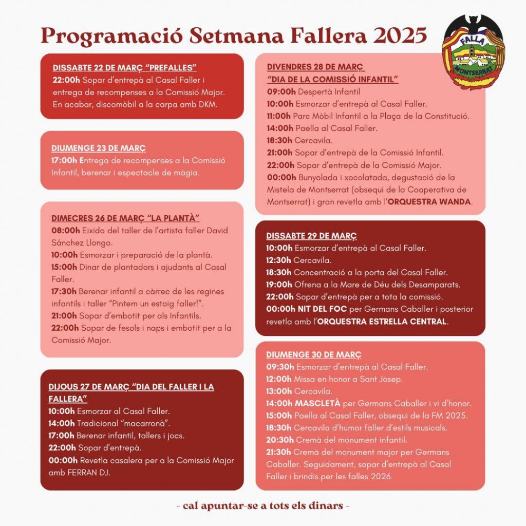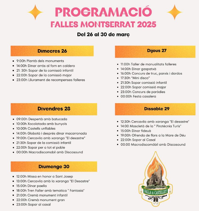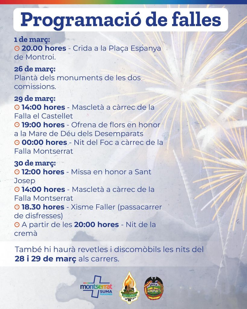 En la agenda del fin de semana destacamos la celebración de las Fallas en Turís, Montserrat o Catadau.