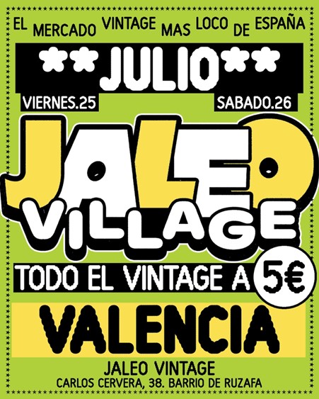 Este viernes 25 y sábado 26 llega a Valencia el Jaleo Village, con prendas de todas las marcas por tan solo 5 euros cada una. Se encuentran ubicados en la calle Carlos Cervera nº 38 en “jaleo vintage” a menos de 2 minutos del mercado de Ruzafa.