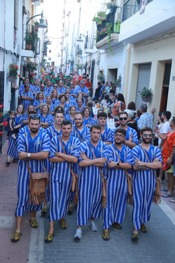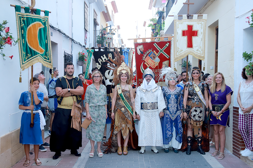 La Banda de Música de Xàbia ha sido la encargada de poner ritmo a los dos bandos entonando diversas marchas moras y cristianas y el insigne pasodoble Xàbia para aderezar la ofrenda floral. El presidente de la Junta de Festes, Abel Moll, la concejala de Fiestas, Mavi Pérez y la alcaldesa de Xàbia, Rosa Cardona; han acompañado a las filaes y los representantes de la fiesta durante su recorrido.