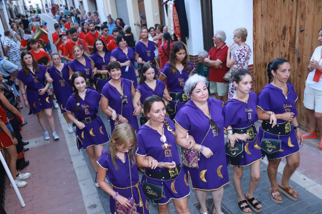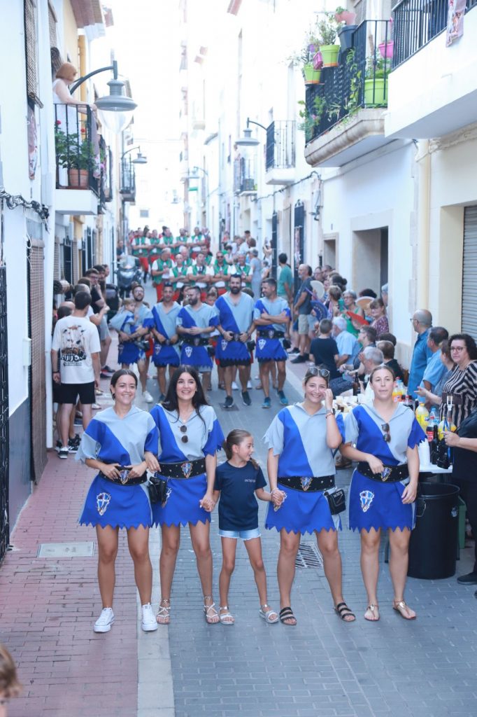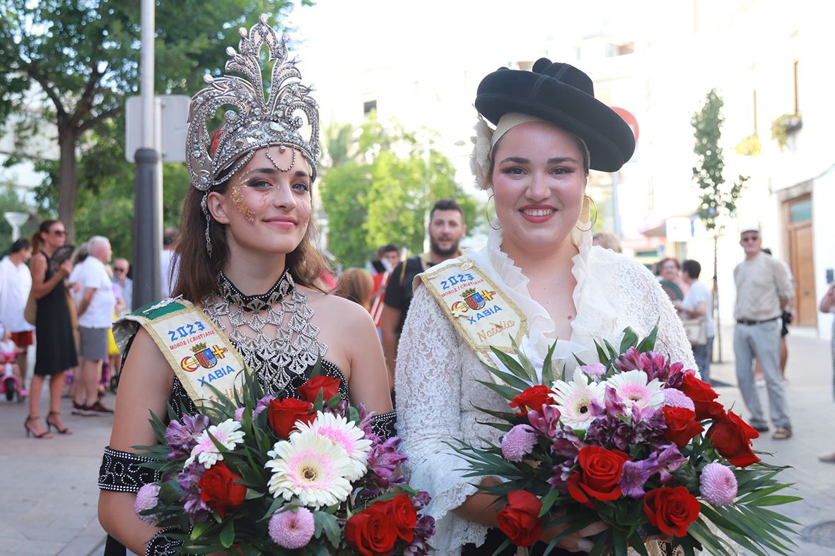 La Banda de Música de Xàbia ha sido la encargada de poner ritmo a los dos bandos entonando diversas marchas moras y cristianas y el insigne pasodoble Xàbia para aderezar la ofrenda floral. El presidente de la Junta de Festes, Abel Moll, la concejala de Fiestas, Mavi Pérez y la alcaldesa de Xàbia, Rosa Cardona; han acompañado a las filaes y los representantes de la fiesta durante su recorrido.