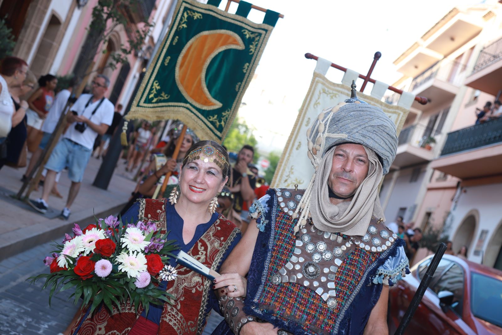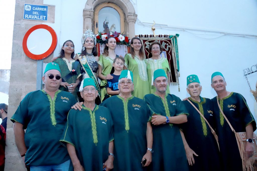 Junto a sus estandartes, las filaes xabieras han recorrido las calles Príncipe de Asturias, Placeta del Concent, Colón, Virgen de la Merced y Foguerer hasta la calle San Jaime (ahora del Ravalet) donde, desde hace años, la gran familia festera ofrenda a su patrón. Los encargados de hacerlo han sido las Abanderadas Mora y Cristiana, Indira Rosa Cardona y Natalia Moya y los Capitanes Almoriscos, Vicente Montaner y Merche Llidó; que han portado sus flores a lo largo del recorrido hasta depositarlas en la hornacina del santo.