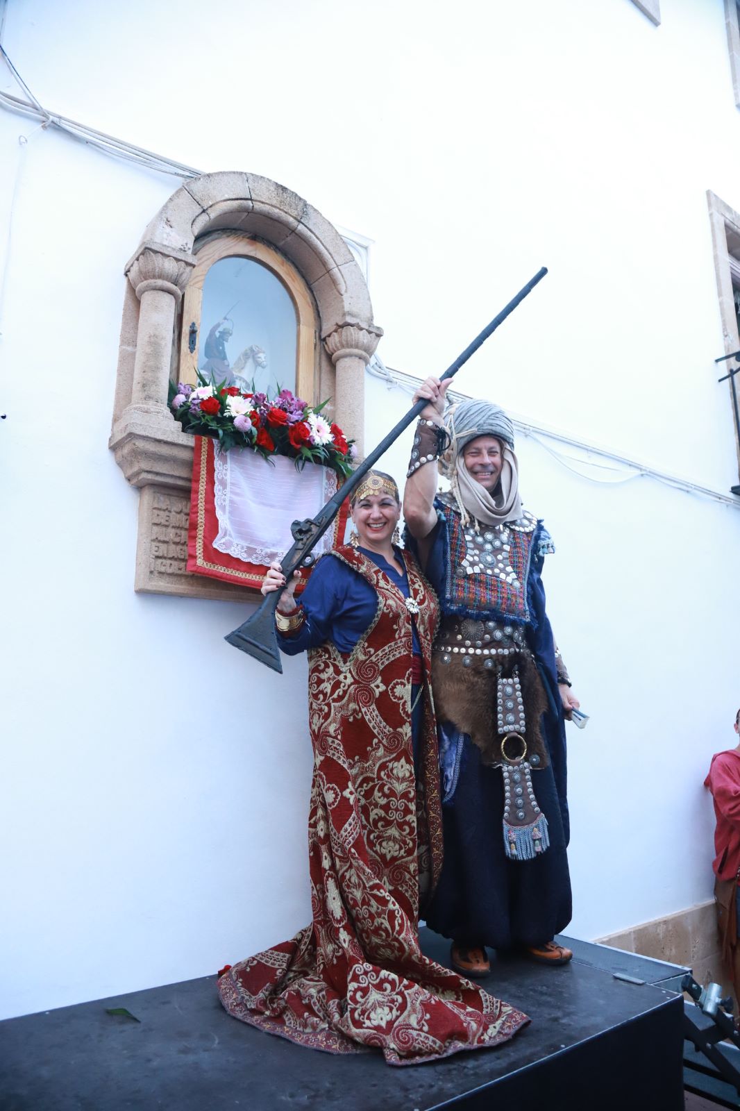La ofrenda de flores a la hornacina de San Jaime del Centro Histórico es una cita obligada. Lo que comenzó como una forma de hacer partícipe de la fiesta a todos los rincones de la localidad, se ha convertido en una visita entrañable que cada año gana en adeptos que no quieren perderse esta muestra de familiaridad, alegría y celebración que, junto a la entraeta en la Playa del Arenal, traslada la fiesta a todos los núcleos de Xàbia.