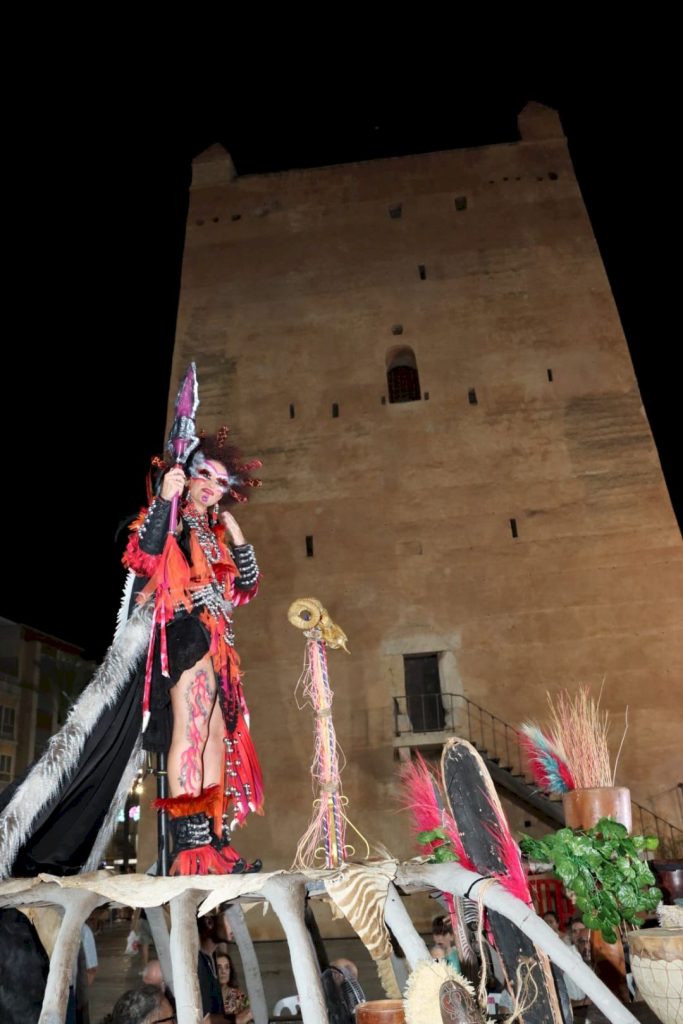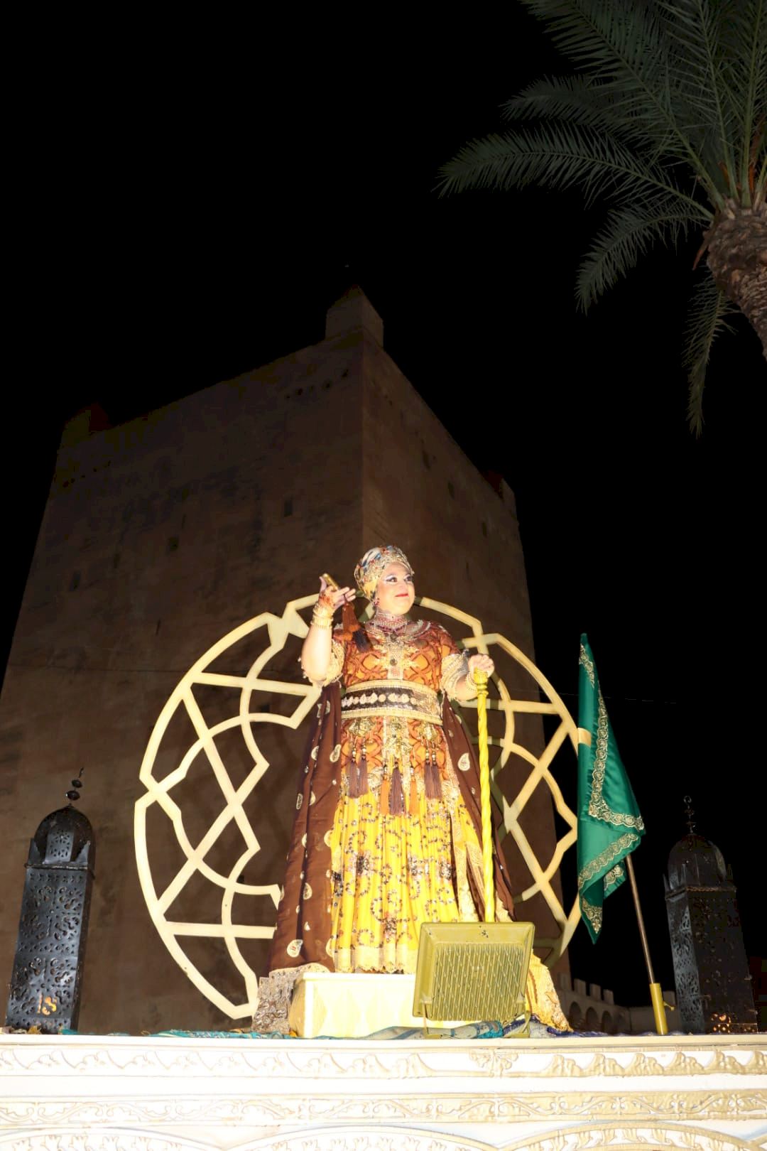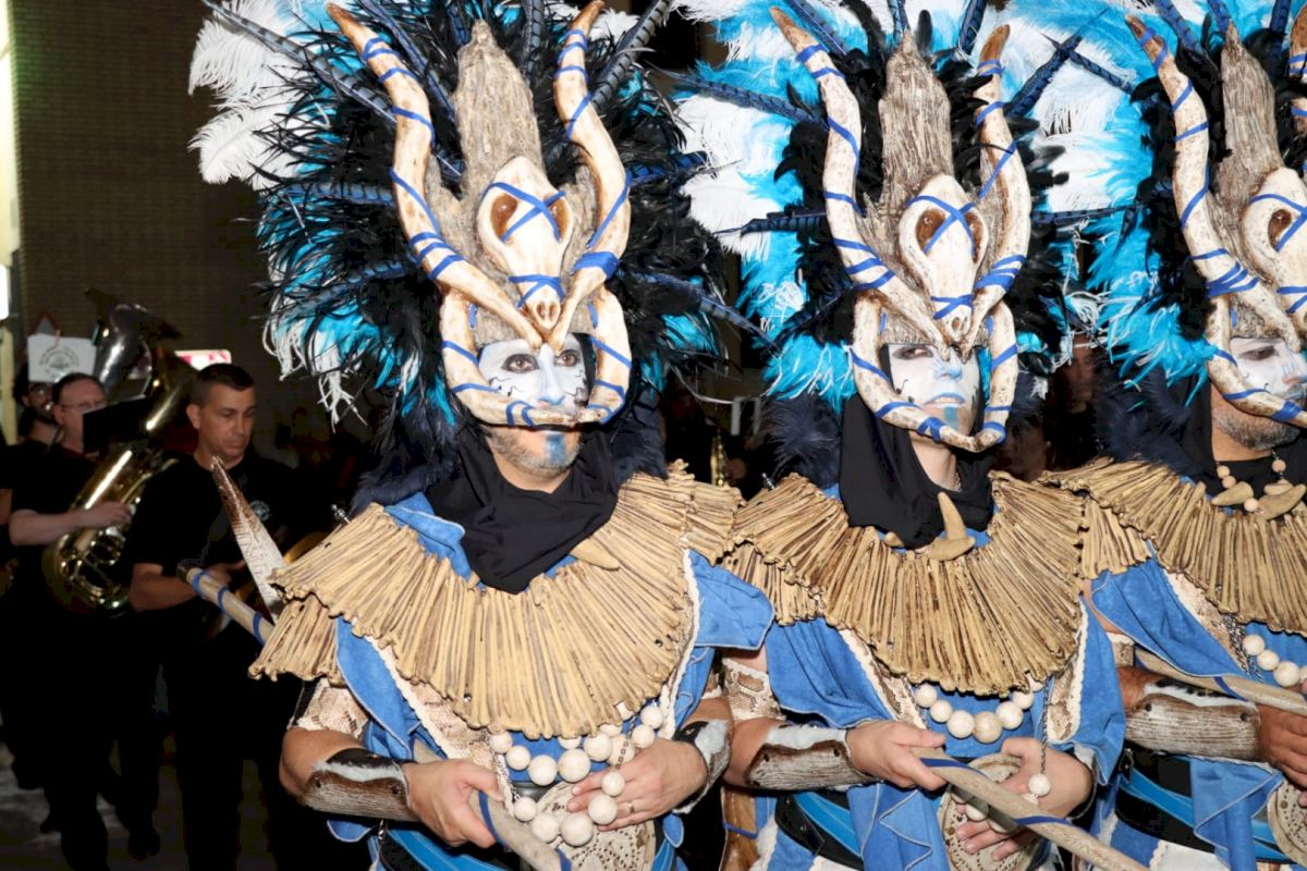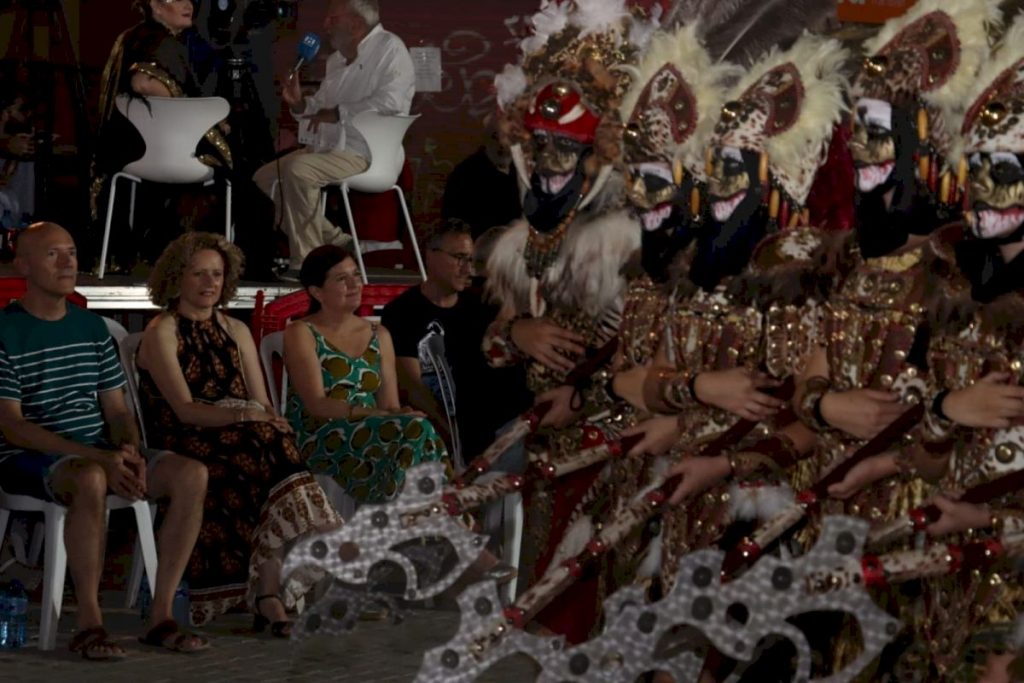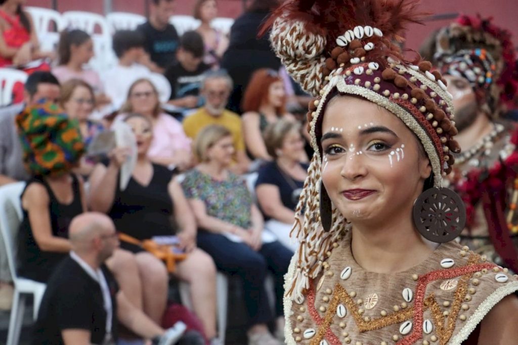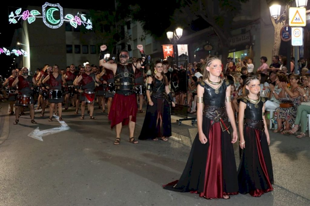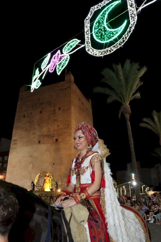 Igual de espectacular fue el desfile del bando moro bajo el liderazgo de la capitana de Almohades, Vicenta Medina Esteve, y la alférez de Benimerines, Gemma Puchades Villarreal, quienes estuvieron acompañadas por un sensacional y vistoso boato durante todo el recorrido hasta el colegio Trinitarias. Ambas no dejaron de sonreír y exhibir su fuerza ante el público, cerrando el desfile entre un sinfín de vítores, aplausos y marchas moras.