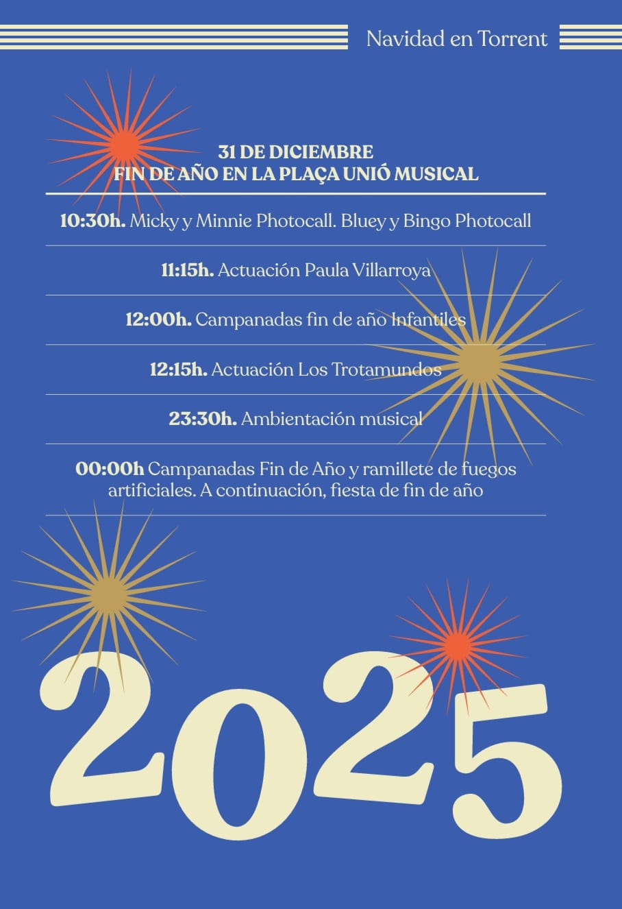 “Por la noche, la Plaça Unió Musical se convertirá en el corazón de nuestra ciudad, donde vecinos y vecinas se reunirán para celebrar juntos el inicio de un nuevo año lleno de esperanza e ilusión. Quiero invitar a todos los torrentinos a que se unan a esta noche especial, diseñada para vivirla en familia y con amigos, porque estas fechas son para celebrar nuestras tradiciones y mirar al futuro con optimismo”, ha añadido la concejal.