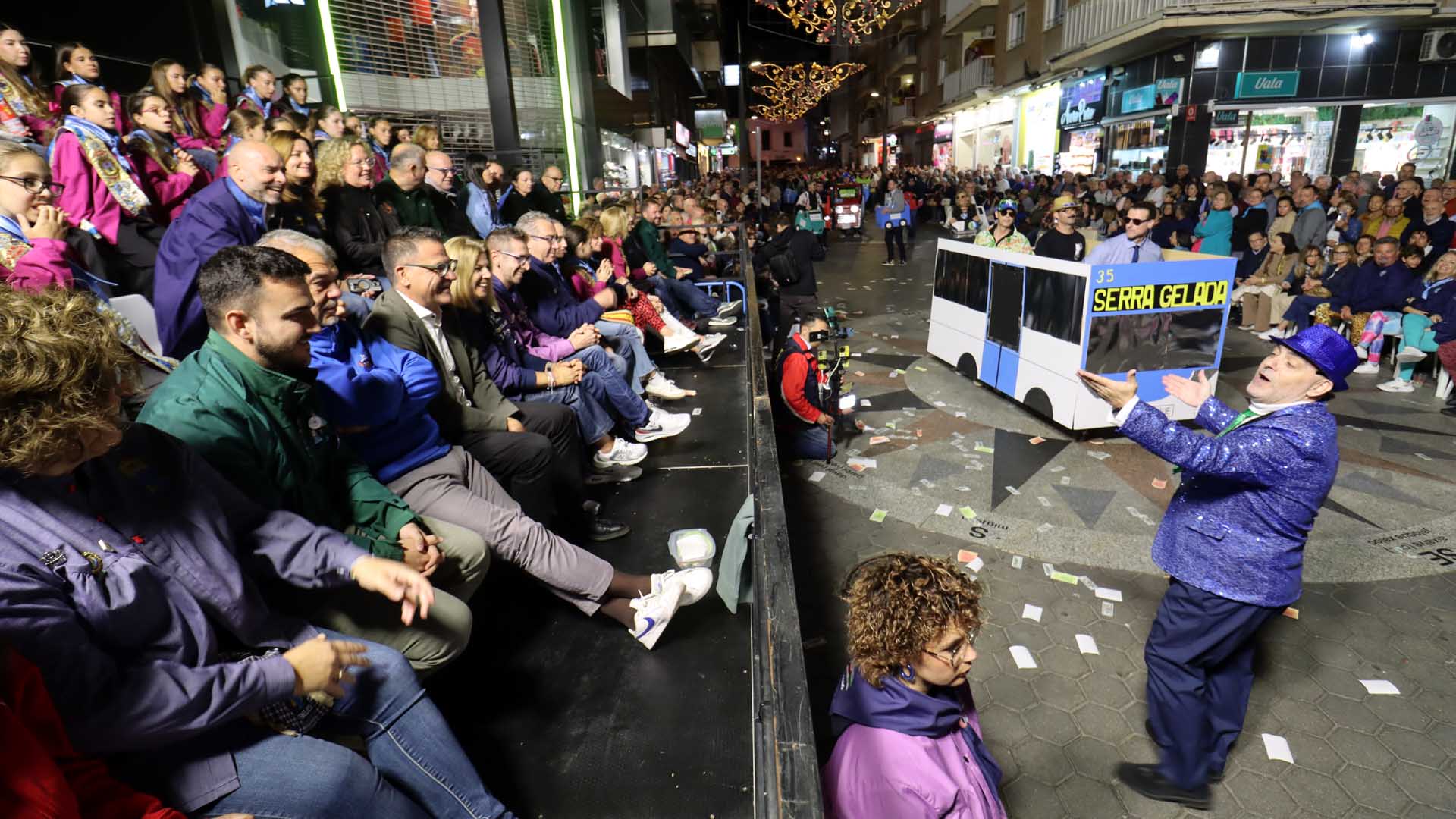El alcalde Toni Pérez, junto a la edil de Fiestas, Mariló Cebreros, y numerosos ediles de la Corporación municipal, siguieron el Desfile del Humor desde la tribuna de autoridades y aplaudieron y rieron las parodias. La mayoría de ellas versaron sobre numerosos temas de actualidad local, autonómica y nacional, en su mayoría relacionadas con la política, las fiestas o el día a día de la propia ciudad.