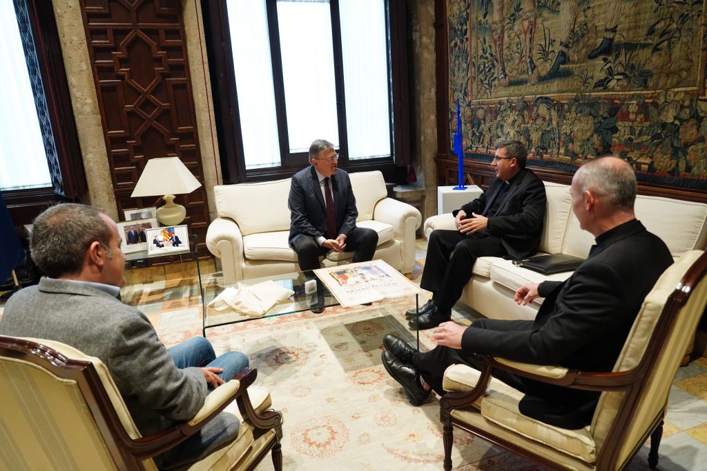 En la reunión, celebrada en el Palau de la Generalitat, han tomado parte el rector y el vicerrector de la Basílica, Melchor Seguí y Álvaro Almenar, respectivamente; el president de la Generalitat, Ximo Puig; y el director general de Representación Institucional de la Generalitat Valenciana, Jorge Alarte.