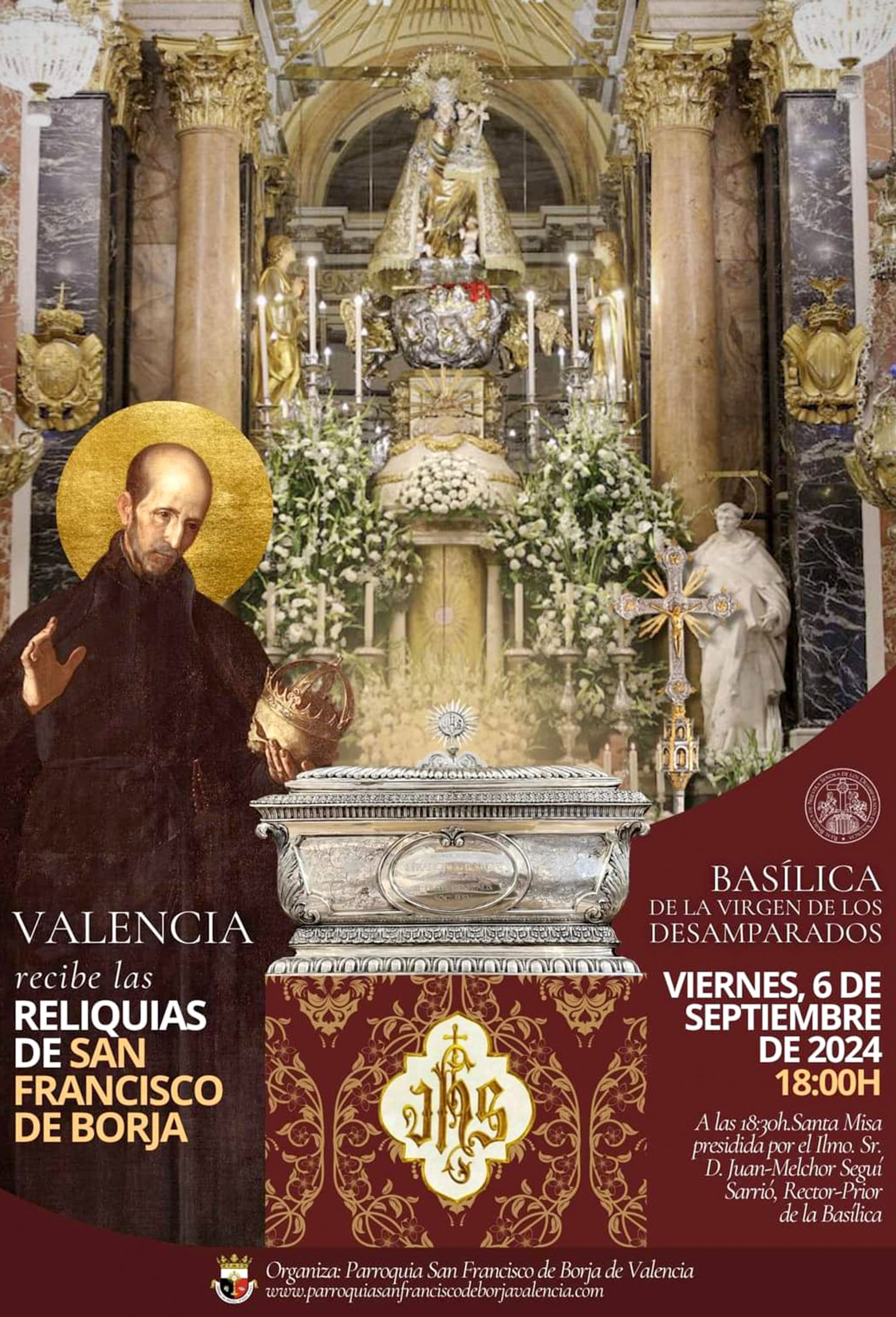 Los restos mortales del santo permanecerán en la parroquia San Francisco de Borja de Valencia pero visitarán también la ciudad de Gandia (del 13 de septiembre al 1 de octubre) y la localidad de Turís (18, 19 y 20 de octubre), siendo la primera parada, a su llegada, la Basílica de la Virgen de los Desamparados mañana viernes, a las 18 horas.