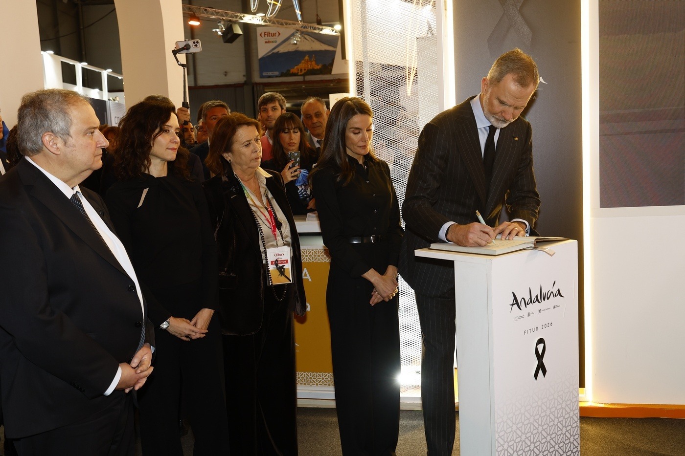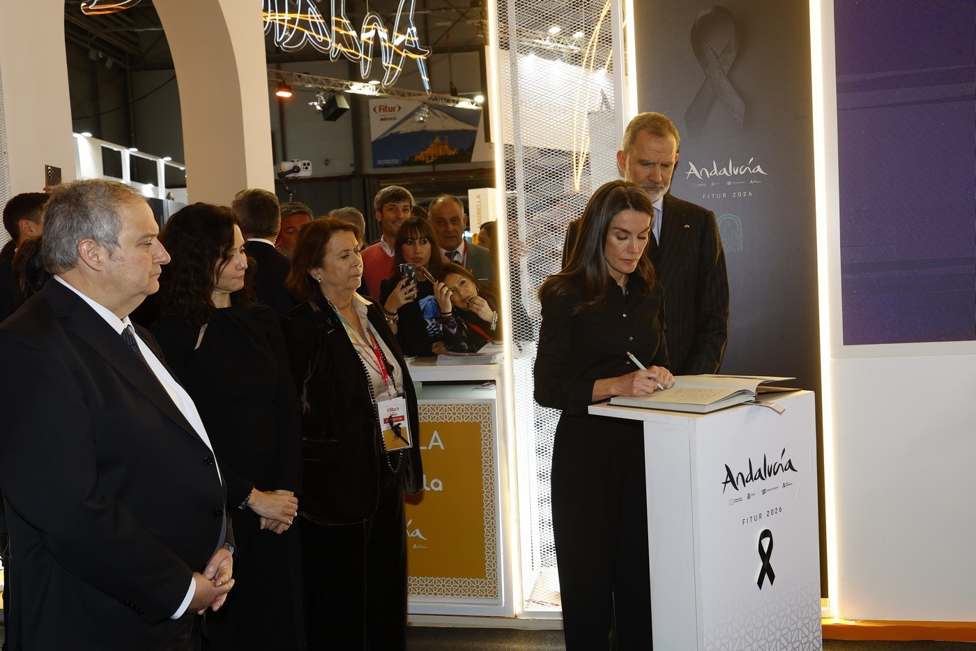 «Al visitar el pabellón de Andalucía de la 46ª edición de FITUR queremos dejar testimonio, en el libro de firmas, de nuestro dolor compartido con todos los españoles y visitantes a la feria ante la tragedia ferroviaria ocurrida en Adamuz, Córdoba. Con todo nuestro afecto».