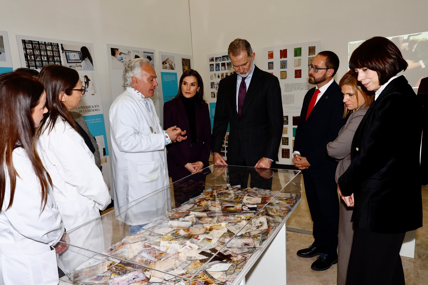 Los Reyes recorrieron el laboratorio, con explicaciones de cada fase de restauración a cargo de los becarios y voluntarios que siguen trabajando en este proceso, que concluye con la entrega a las familias de un álbum con las fotografías restauradas. En esta ocasión, Don Felipe y Doña Letizia conversaron con dos familias que han recogido sus fotos, y detallaron lo que significa para ellos recuperar esa parte de su memoria familiar.