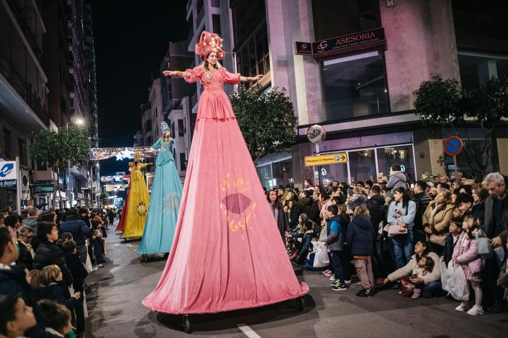 La cabalgata ha empezado a las 19h, el desfile organizado por la Junta de Fiestas en esta edición ha contado con la participación de 500 personas, 80 voluntarios, 10 carrozas, 20 animaciones a pie y 8 vehículos, y se han lanzado más de 7.000 kilos de caramelos.