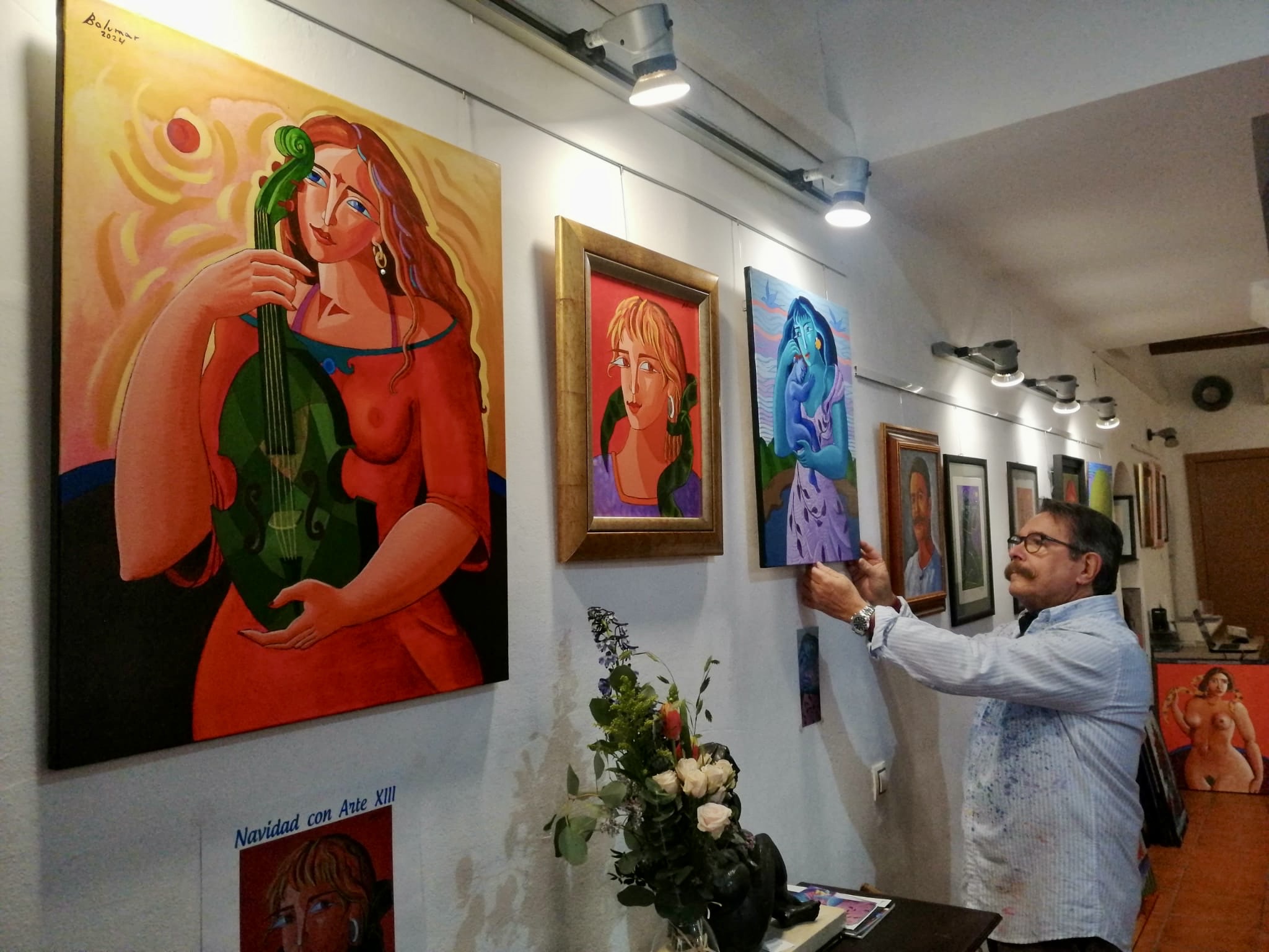 Con la misma ilusión y celo que el primer año Luis Bolumar da estos días los últimos retoques a su exposición ‘Navidad con Arte. Regala Arte, regálate Arte’ que suma ya trece ediciones. Obras de pequeño formato que este año tienen como hilo conductor la alegría y un guiño a la música.