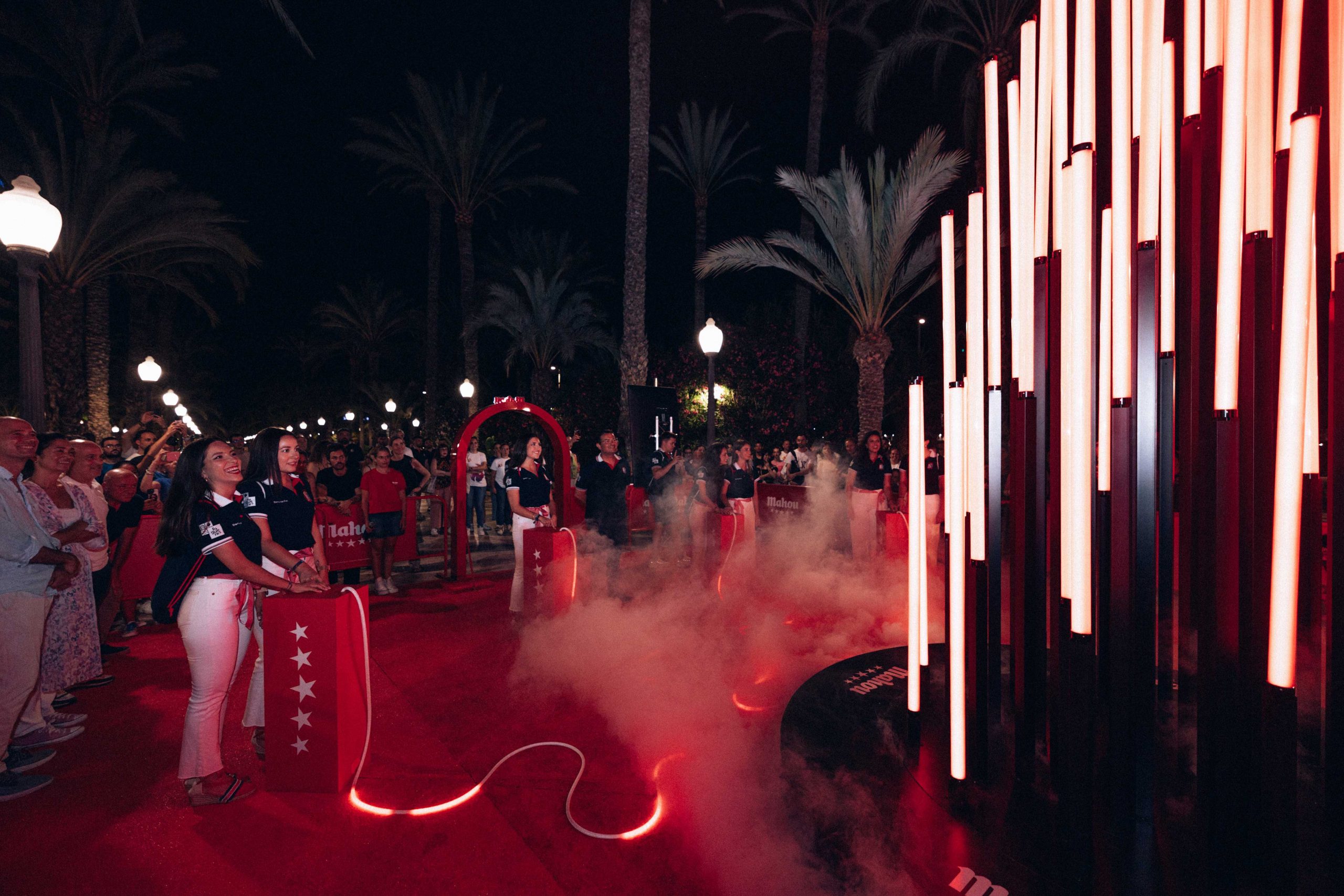 El Paseo de la Explanada ha vivido esta madrugada un encendido muy especial. Mahou, como patrocinador oficial de les Fogueres de Sant Joan 2025, ha inaugurado, junto al monumento a Canalejas, la escultura lumínica interactiva “Enciende Alicante” que reacciona al pulso de quienes se acercan a ella.
