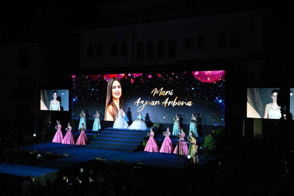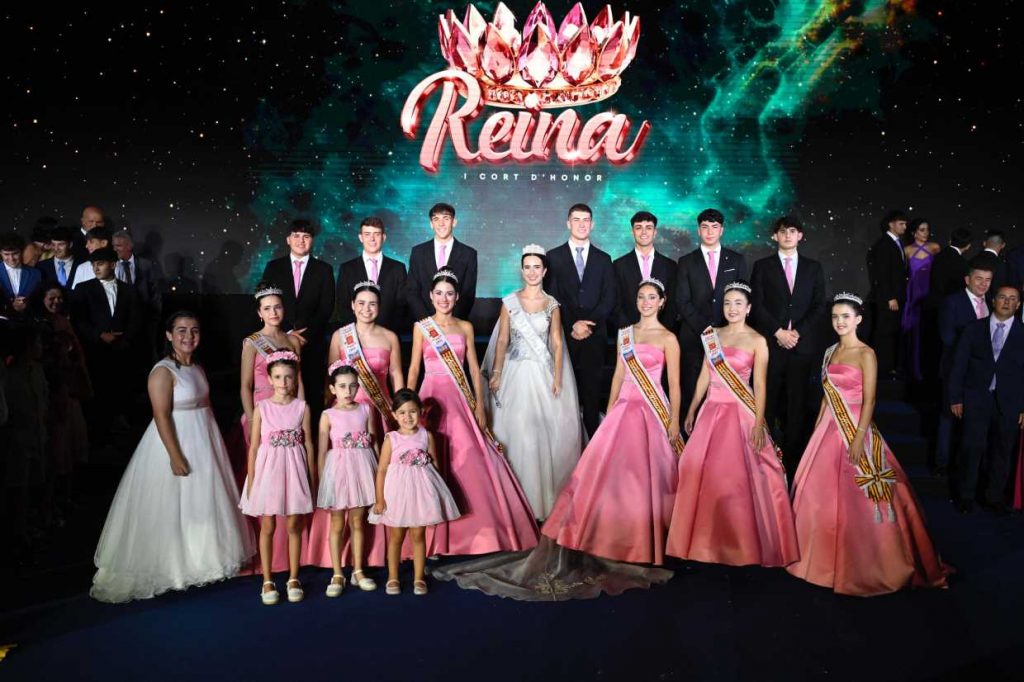 El momento estelar de la noche fue cuando Mari Aznar Arbona fue coronada como reina de “les Festes d’Agost” 2025 por Andrea Jumilla Pérez. La reina de 2024 le puso la banda y la corona a la reina de 2024 y le entregó el cetro, pasándole el testigo real festero, para que continúe la dinastía de #LaNuciaEnFestes.