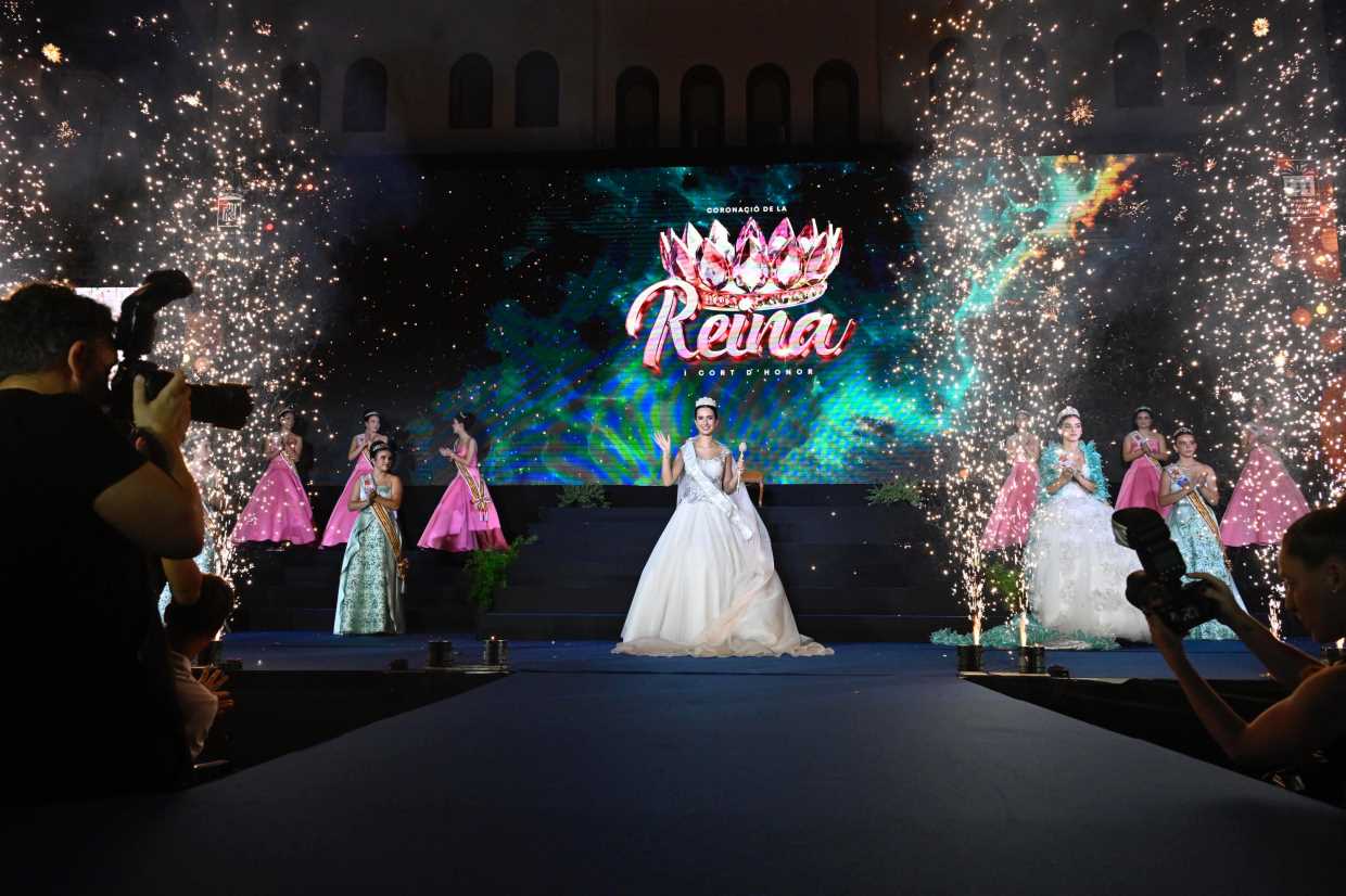 Reina y damas 2025 fueron presentadas previamente con una pequeña entrevista en directo en la que se percibieron las sensaciones de cada una de ellas antes de cruzar la pasarela. Además, en este emocionante acto no faltaron videos y audiovisuales en la espectacular pantalla que vestía el fondo del escenario. Los efectos pirotécnicos y la emotiva música también acompañaron cada momento del acto. La “Coronació 2025” fue presentada por Nuria Llorens, Isa Cano y Marian Pastor “majorales” 2025 de la penya El Cuc.
