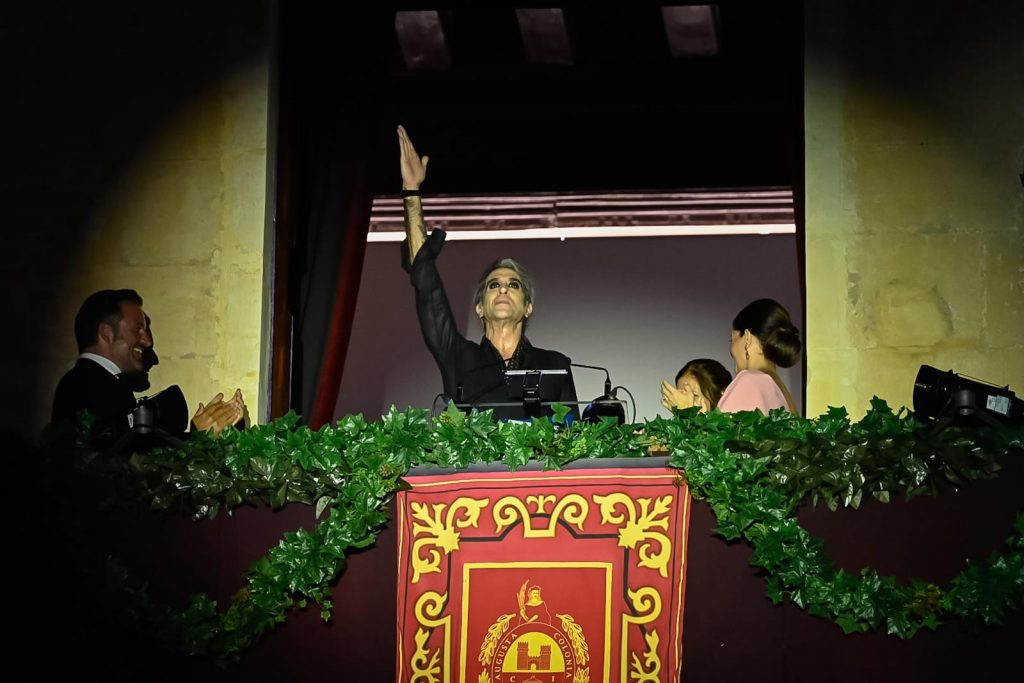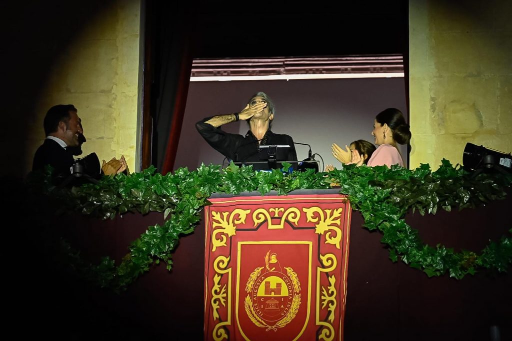 - El artista se ha dirigido a los ilicitanos desde el balcón del Ayuntamiento donde ha destacado esta ciudad como “de primera, hospitalaria y que acoge a todo el mundo”