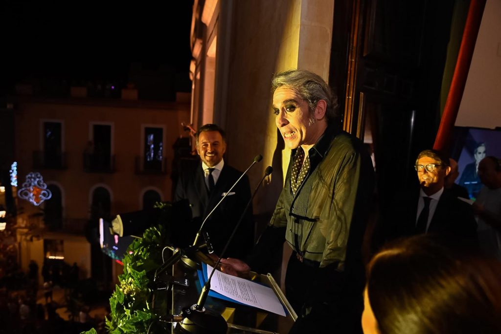 Vaquerizo ha empezado su pregón agradeciendo al Ayuntamiento “ por hacerme este regalo, no eres nadie si no estás subido al balcón del Ayuntamiento de esta ciudad tan bonita como es Elche”. Se ha mostrado nervioso al inicio ya que ha dicho, “ la cosas importantes te ponen así pero también estoy feliz porque Elche no es ajena a mí, pero además es una ciudad que me gusta, soy fan de la belleza y la historia, la modernidad y la tradición, y de su gente generosa y abierta de mente”.
