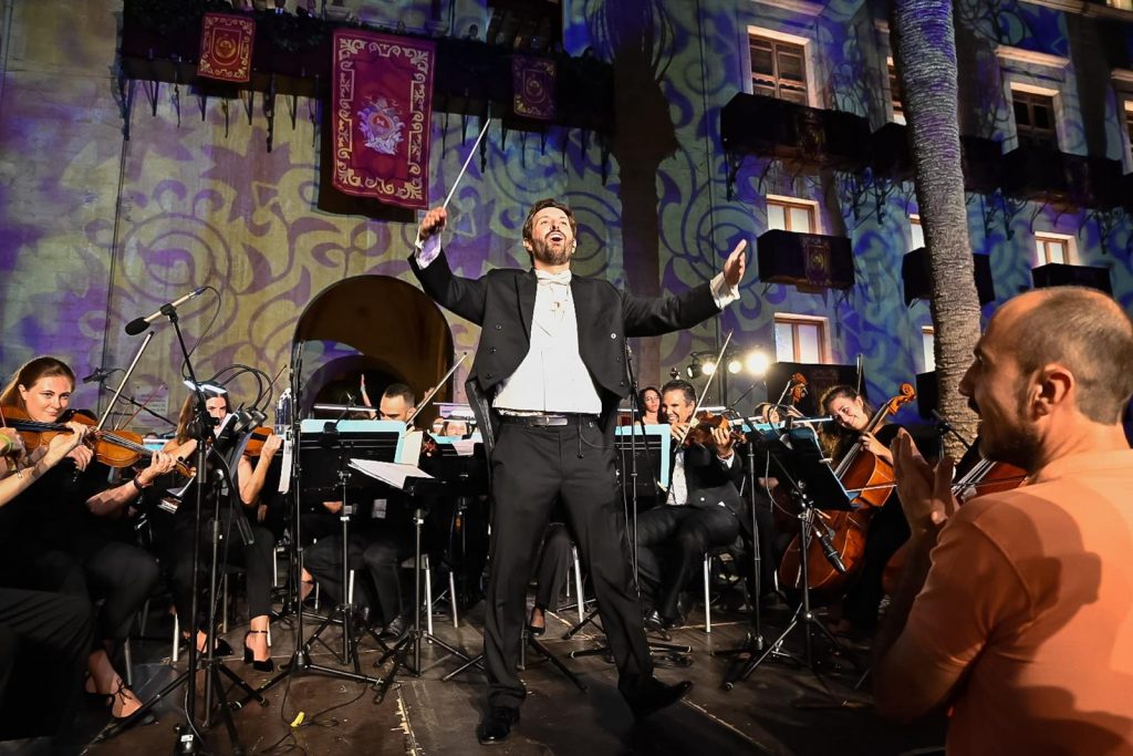 Antes de finalizar el acto, ha sonado el Himno de Elche, de la Comunidad Valenciana y Nacional, para después concluir con la actuación musical en directo de DJ Symphonic & Royal Film Concert Orchestra.