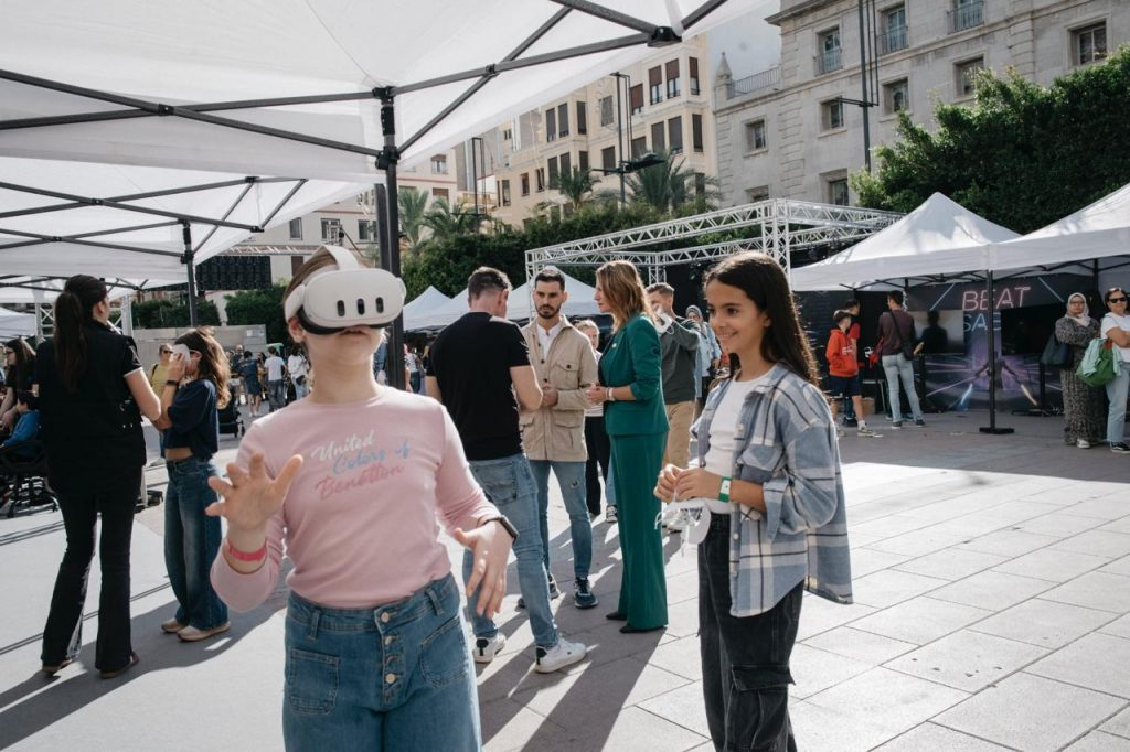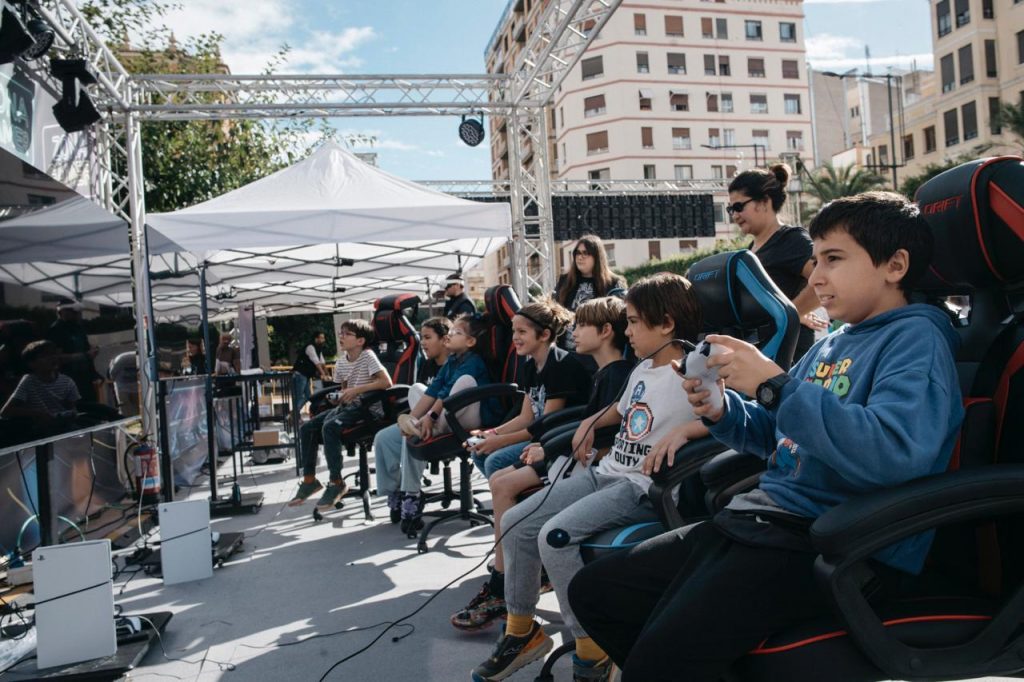 La alcaldesa de Castellón, Begoña Carrasco, ha sido testigo del éxito de participación durante la jornada de hoy sábado en la plaza Huerto Sogueros. La plaza se ha llenado de simuladores, música, zona gaming, arte inmersivo o robótica entre otras actividades