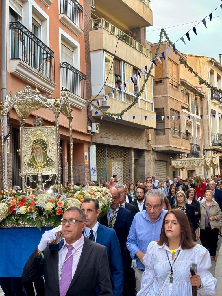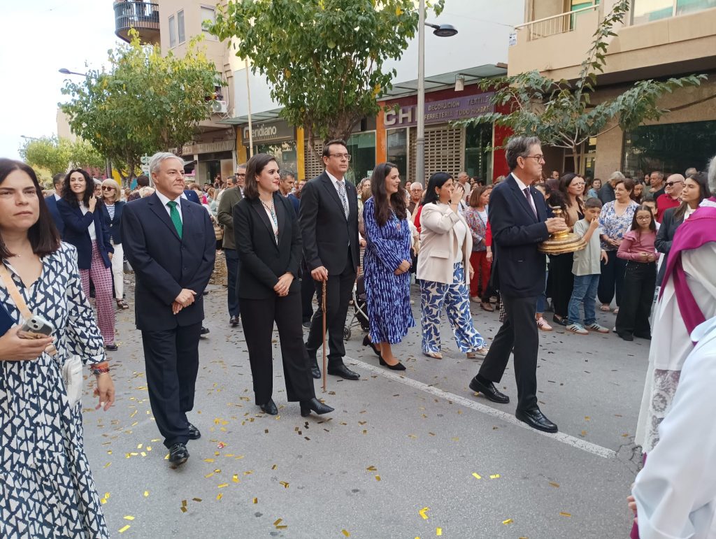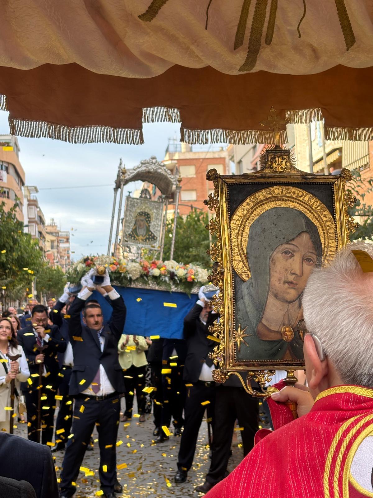 Más de 7.000 personas han arropado este domingo a la Santa Faz en su visita a Mutxamel para honrar a la patrona, la Virgen de Loreto, a una semana de su Coronación Canónica. Hacía 36 años que la Santa Faz no se reencontraba con Nuestra Señora de Loreto. La llegada de la Reliquia a la Santa Faz ha sido saludada con disparo de cohetes, lo mismo que ha ocurrido cuando ambas imágenes han llegado a la parroquia de El Salvador, para presidir la ceremonia religiosa. La concejala de Fiestas del Ayuntamiento de Alicante, Cristina Cutanda, ha subrayado en su intervención en la parroquia de El Salvador la “fusión de sentimientos hacia dos de las devociones históricas más consolidadas de la huerta alicantina”.