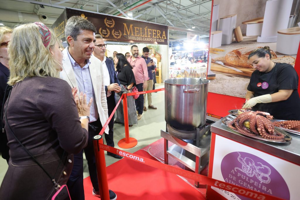 El president de la Generalitat, Carlos Mazón, ha destacado el compromiso de Alicante Gastronómica con “la gastronomía, hostelería, turismo y sector primario de la Comunitat Valenciana que se ve reflejado en este espacio durante los días que se celebra el certamen”.