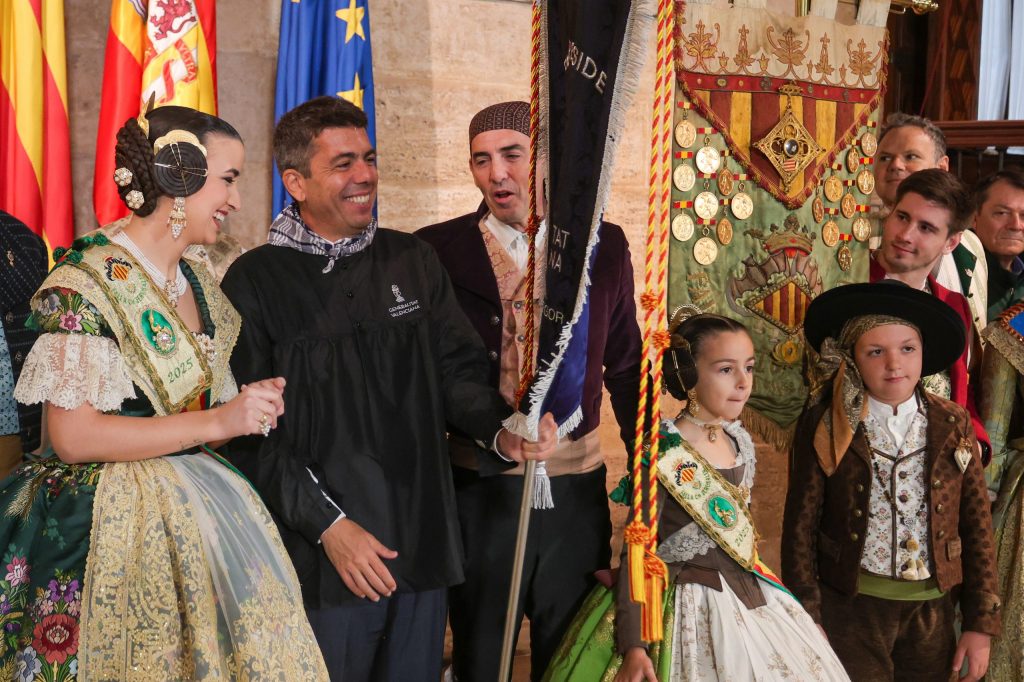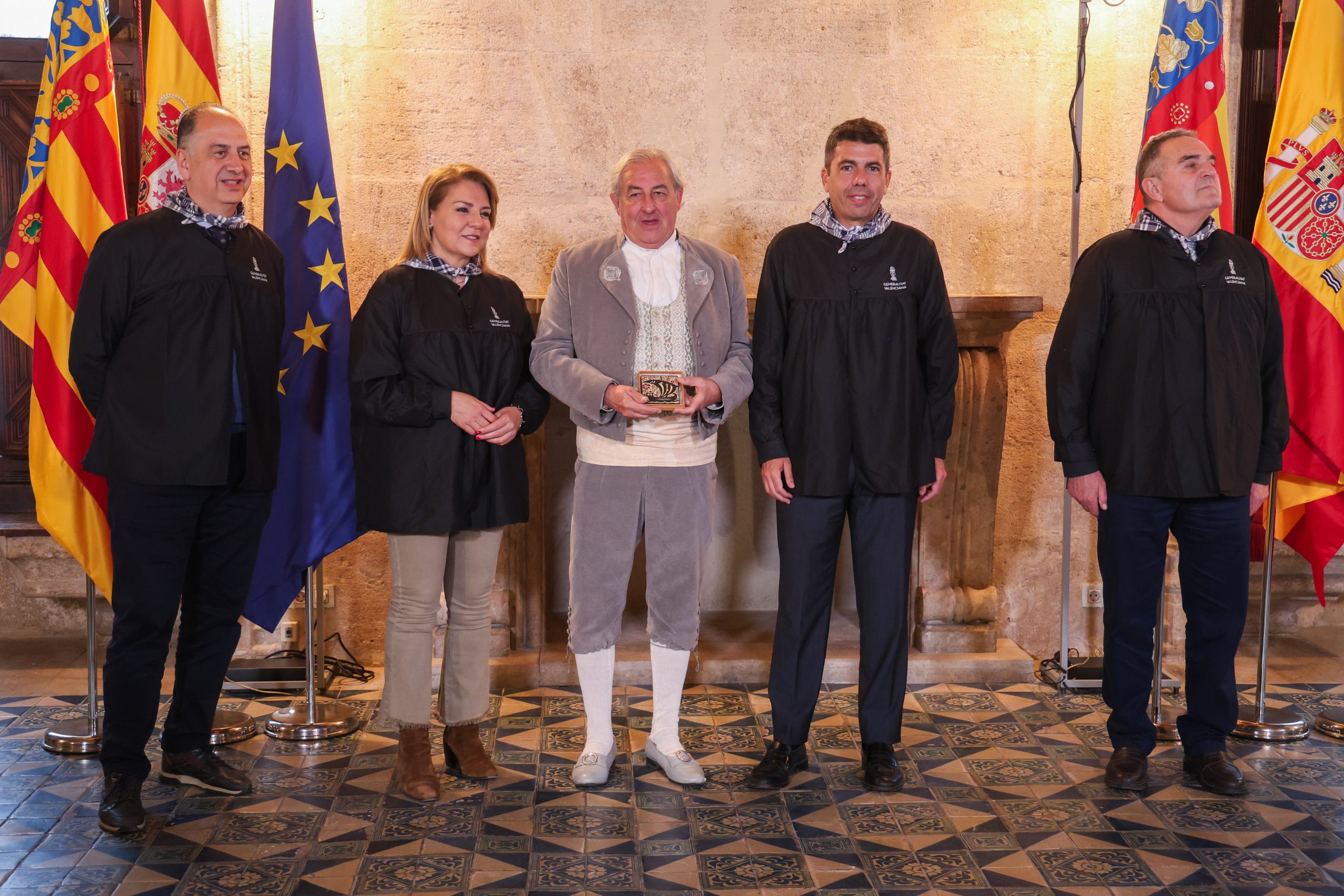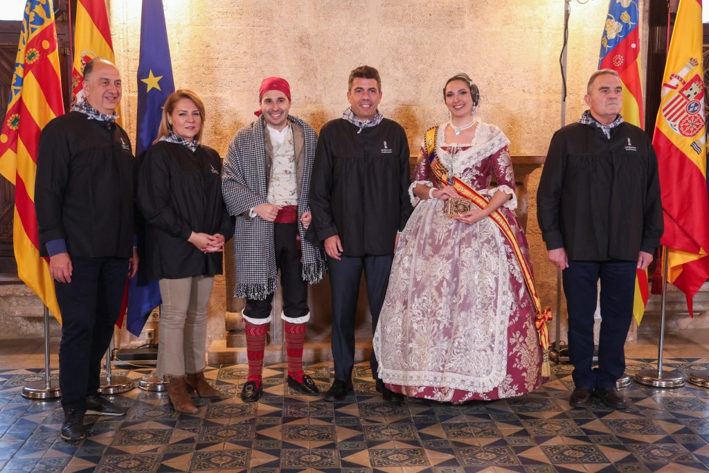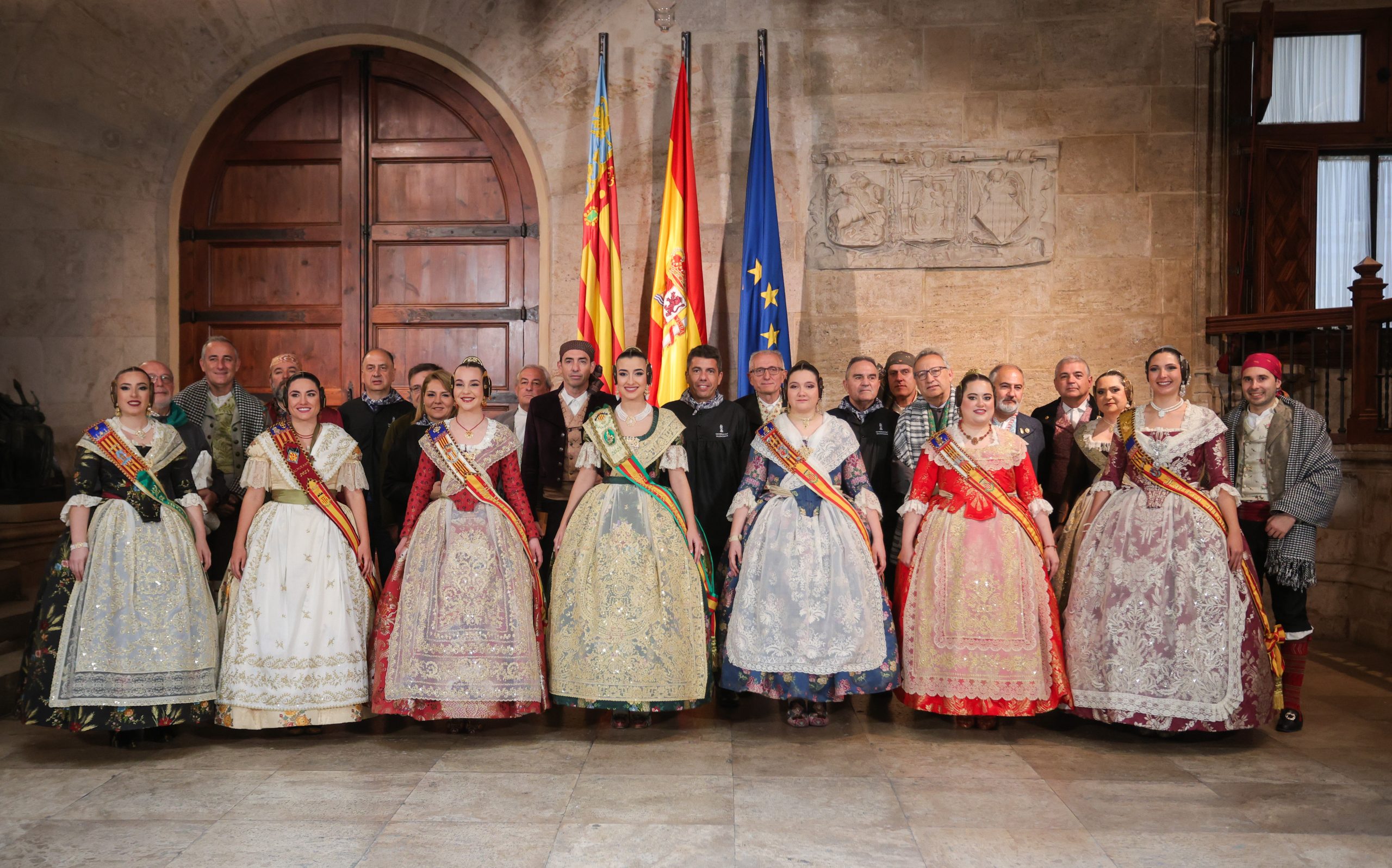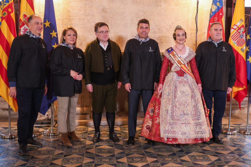 El president de la Generalitat, Carlos Mazón, ha recibido en el Palau de la Generalitat a los representantes de las Fallas de la Sección Especial de València, acompañado por la vicepresidenta primera y consellera de Servicios Sociales, Igualdad y Vivienda, Susana Camarero, el vicepresidente segundo para la Recuperación Económica y Social de la Comunitat Valenciana, Francisco José Gan Pampols y el conseller de Emergencias e Interior, Juan Carlos Valderrama.