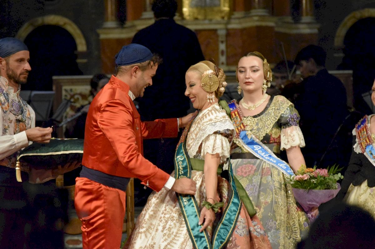 El moment més esperat i solemne va arribar en el desfile de la Cort d’Honor i l’imposició de la banda que acredita a Merche Esplugues Rodríguez com a Reina de l’Horta de Valéncia 2025.