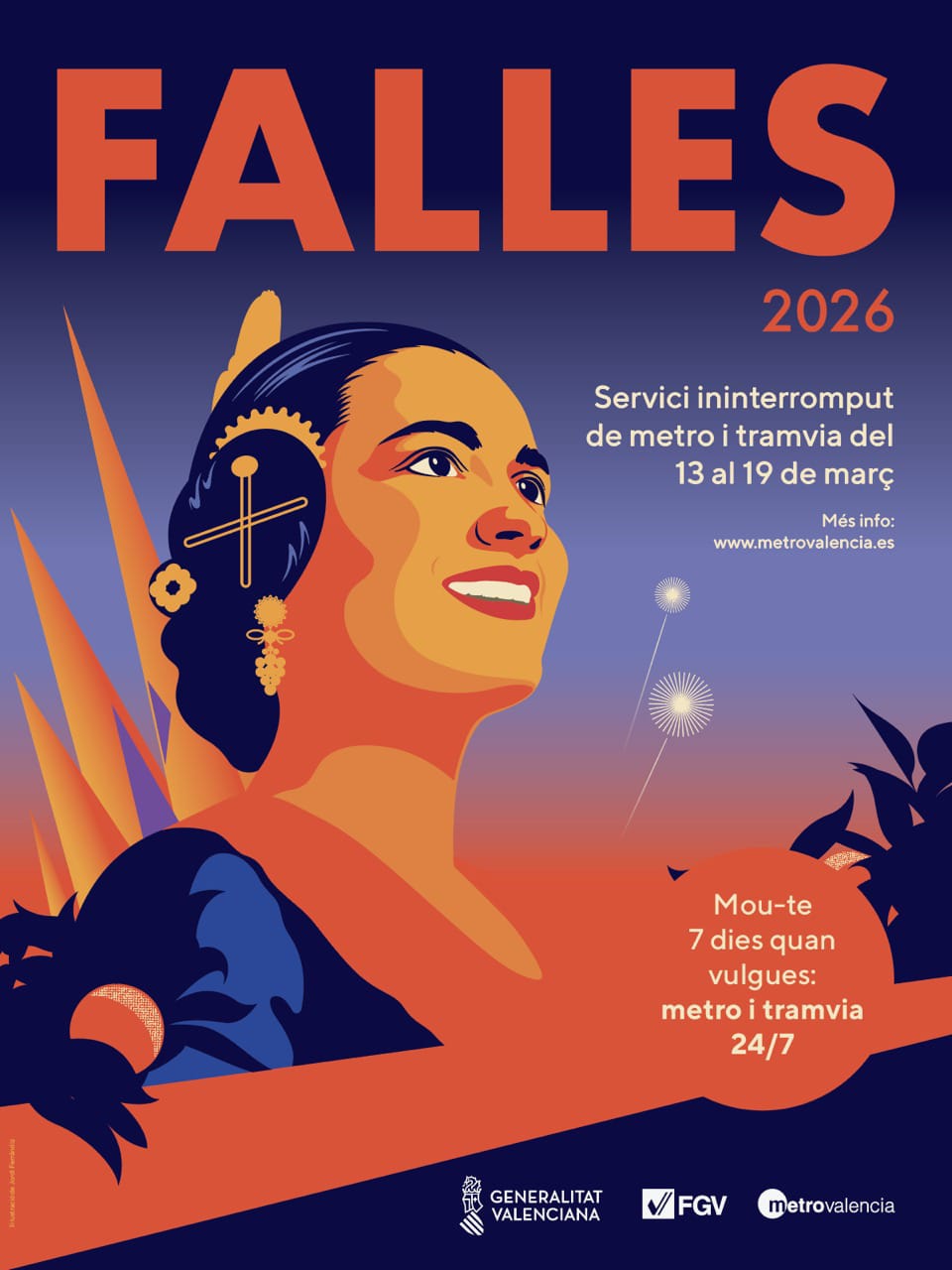 Con el servicio previsto, Metrovalencia ofrecerá a partir del viernes 13 y hasta la madrugada del viernes 20 de marzo, tras la Nit de la Cremà, 168 horas ininterrumpidas de metro y tranvía, con un gran dispositivo humano y técnico para atender las necesidades de movilidad previstas para esos días. De la misma forma, Metrobús ofrece el fin de semana servicio nocturno y a partir del 16 activa un refuerzo de líneas de los cuatro corredores metropolitanos.