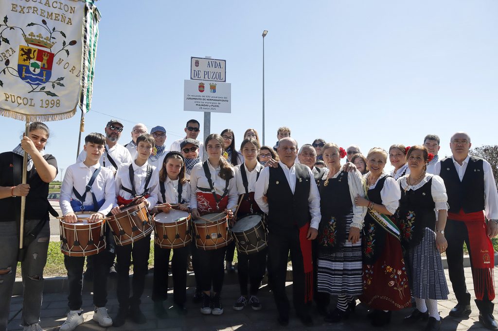 Pese a lo apretado del programa, hubo tiempo para la firma del nuevo compromiso de hermanamiento, entre los dos alcaldes, Antonio Díaz y Paz Carceller. Durante el acto, la alcaldesa de Puçol agradeció la ayuda para la Dana, enviada desde Extremadura, con camiones de alimentos y todo tipo de ayudas.