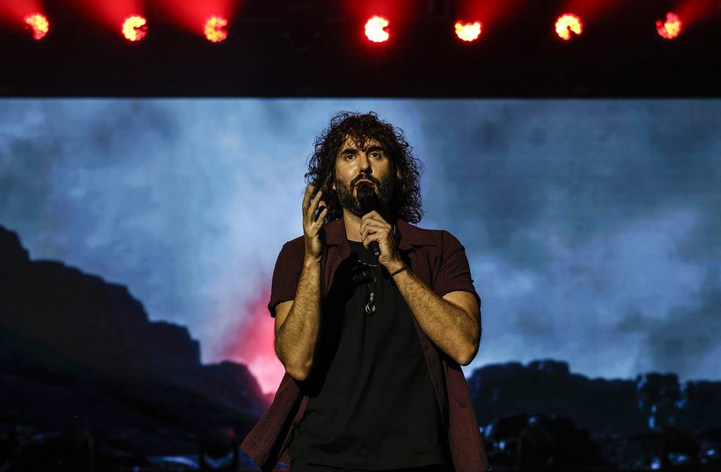 La noche ha comenzado con la banda Éxtasis, cuyo sonido indie y pop rock ha puesto en marcha al público con una propuesta vibrante que ha funcionado como antesala perfecta del plato fuerte de la noche. Pasadas las nueve de la noche, Mikel aparecía en el escenario para dar inicio a un espectáculo estructurado en cuatro grandes capítulos, titulados “El Miedo”, “El Grito”, “La Fe” y “El Paraíso”. A través de esta narrativa, el artista ha guiado a los asistentes por un un viaje que partía de la oscuridad para avanzar, paso a paso, hacia la luz.