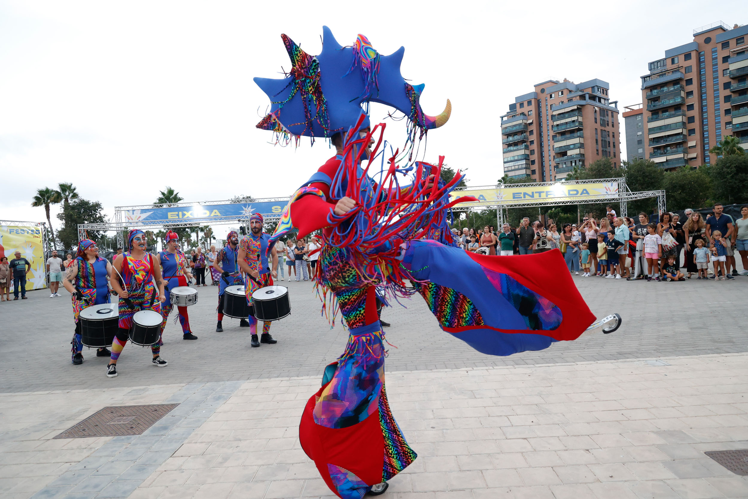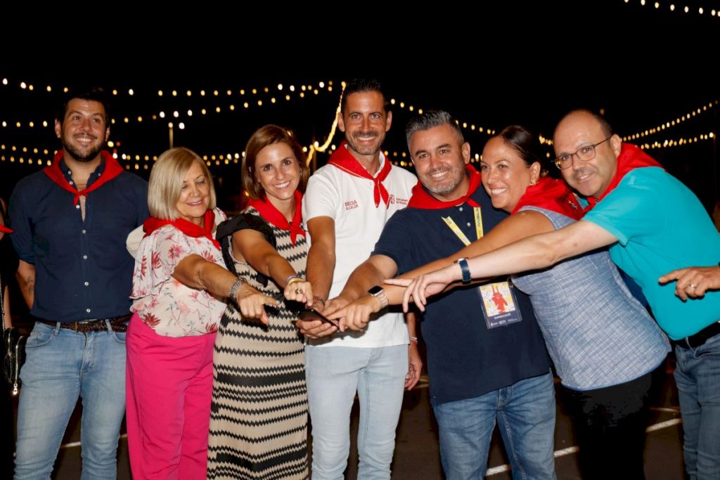 El alcalde, Carlos Fernández Bielsa, y el concejal de Fiestas, Toni Arenas, junto al resto de la corporación municipal, fueron los encargados de inaugurar el recinto y visitar cada una de las casetas de las diferentes asociaciones, que estarán abiertas durante toda la semana. La ambientación musical y un colorido espectáculo de malabarismo de Dinamic Show animó también a todo el público asistente, que pudo hacerse también con el pañuelo distintivo de las fiestas.