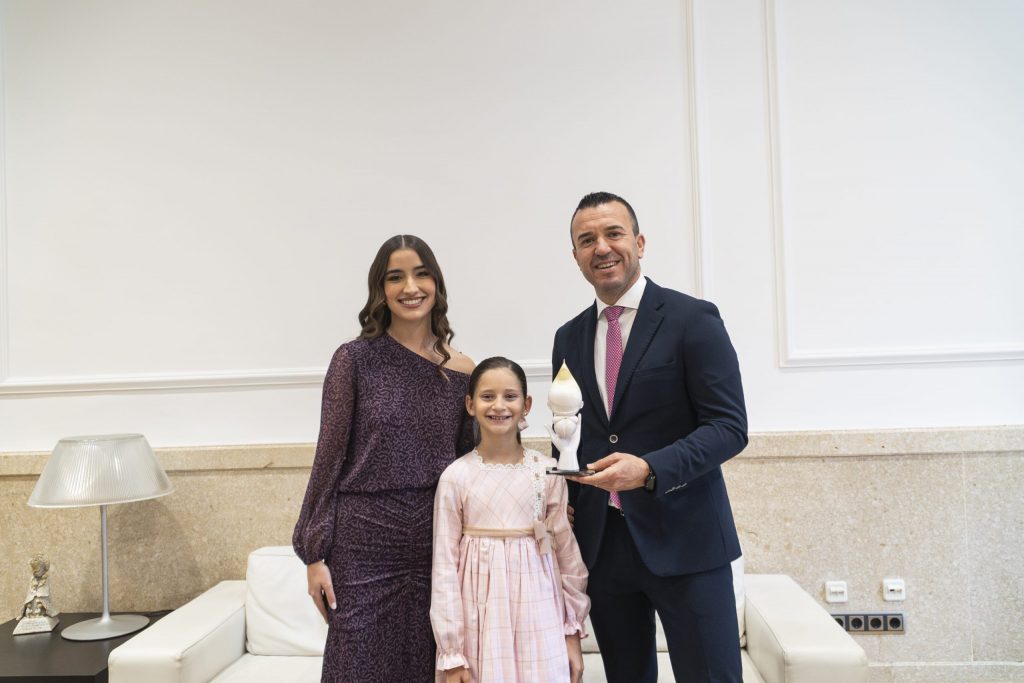 El president de la Diputació ha obsequiat a les Falleres Majors amb uns palmitos personalitzats, mentres que elles li han regalat una figura que simbolitza l’esperança per a les Falles.