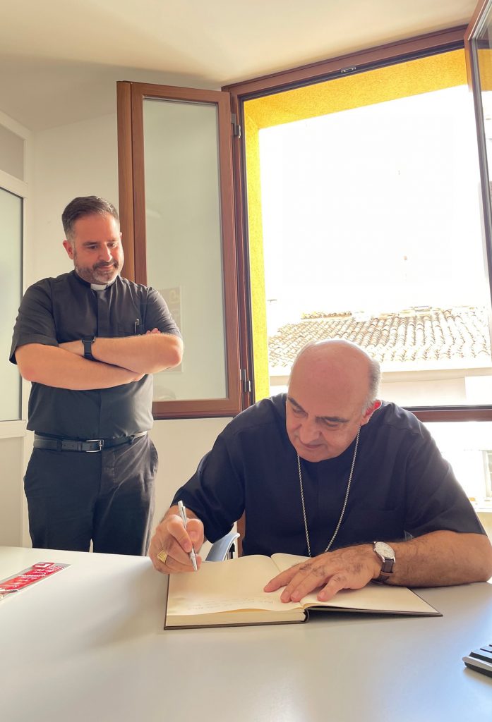 Tras la visita a los centros de Cáritas Gandia, el Arzobispo ha mantenido una reunión con la directiva de la entidad y los párrocos. Después ha visitado al alcalde de Gandia, José Manuel Prieto, y ha firmado en el libro de honor de la ciudad.