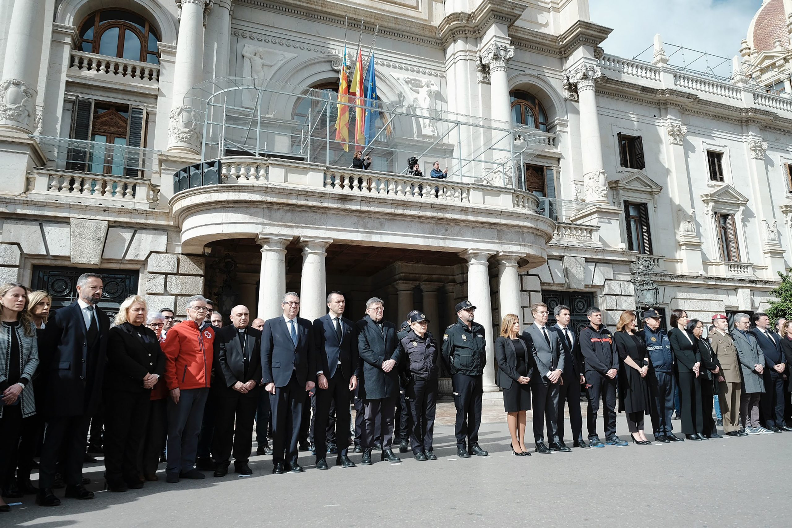 En el minuto de silencio han tomado parte las máximas autoridades políticas, civiles, militares, de instituciones y de la sociedad valenciana, fuerzas y cuerpos de seguridad y representantes, vecinos y allegados de algunas de las familias afectadas por el incendio.