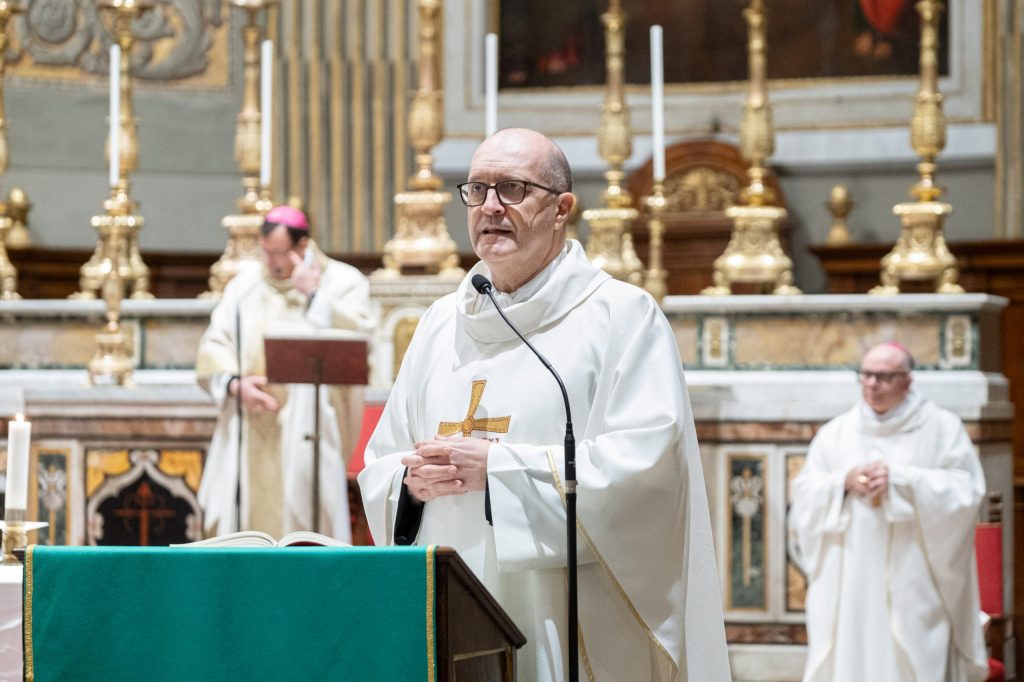 El rector de la Iglesia Nacional Española de Santiago y Montserrat, el valenciano José Jaime Brosel, fue el encargado de dar la bienvenida a la peregrinación valenciana. En sus primeras palabras de acogida señaló que «aquí siempre se siente como en casa, pero hoy es especial. Tengo que agradecer a quienes han organizado esta peregrinación diocesana por haber pensado en esta casa como el inicio. Es un salir de casa para llegar a casa», aseguró.