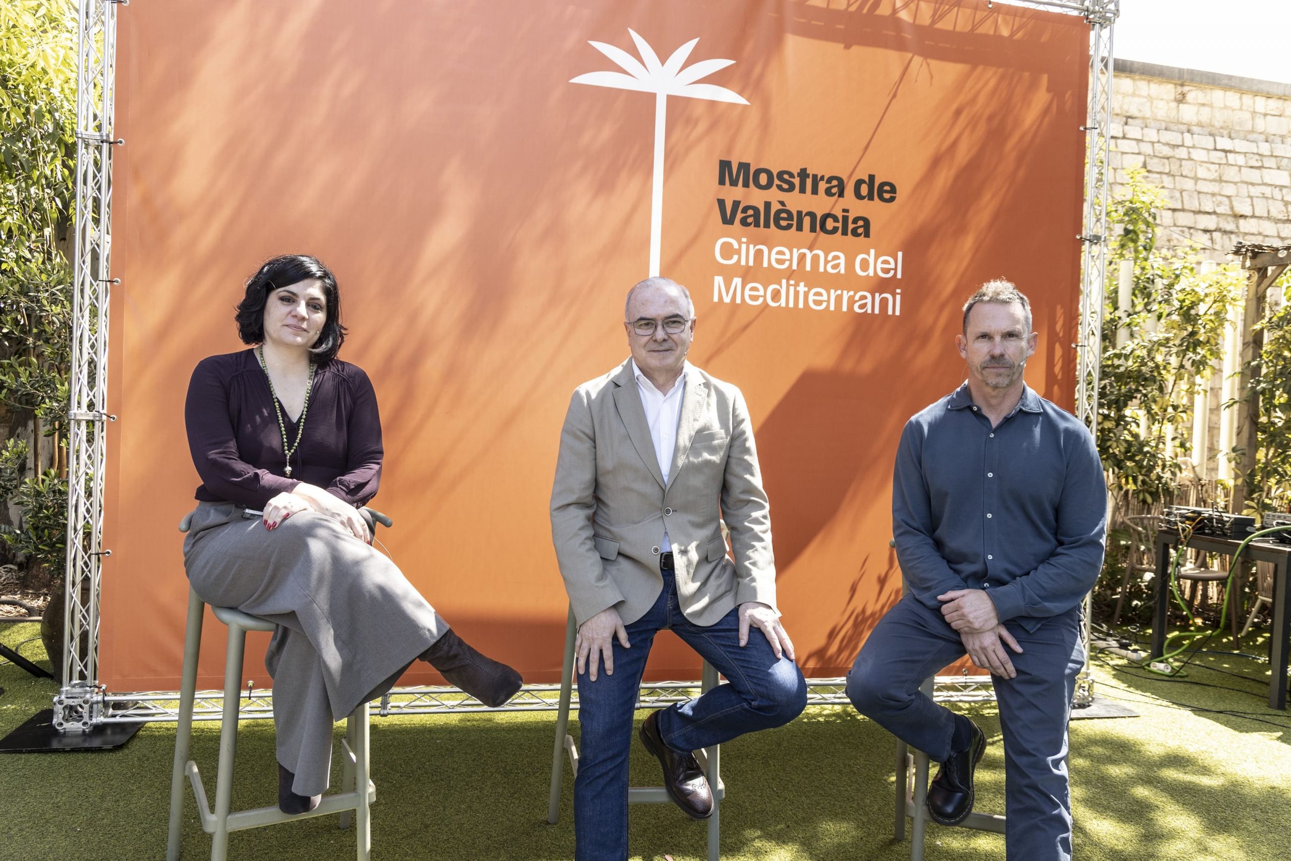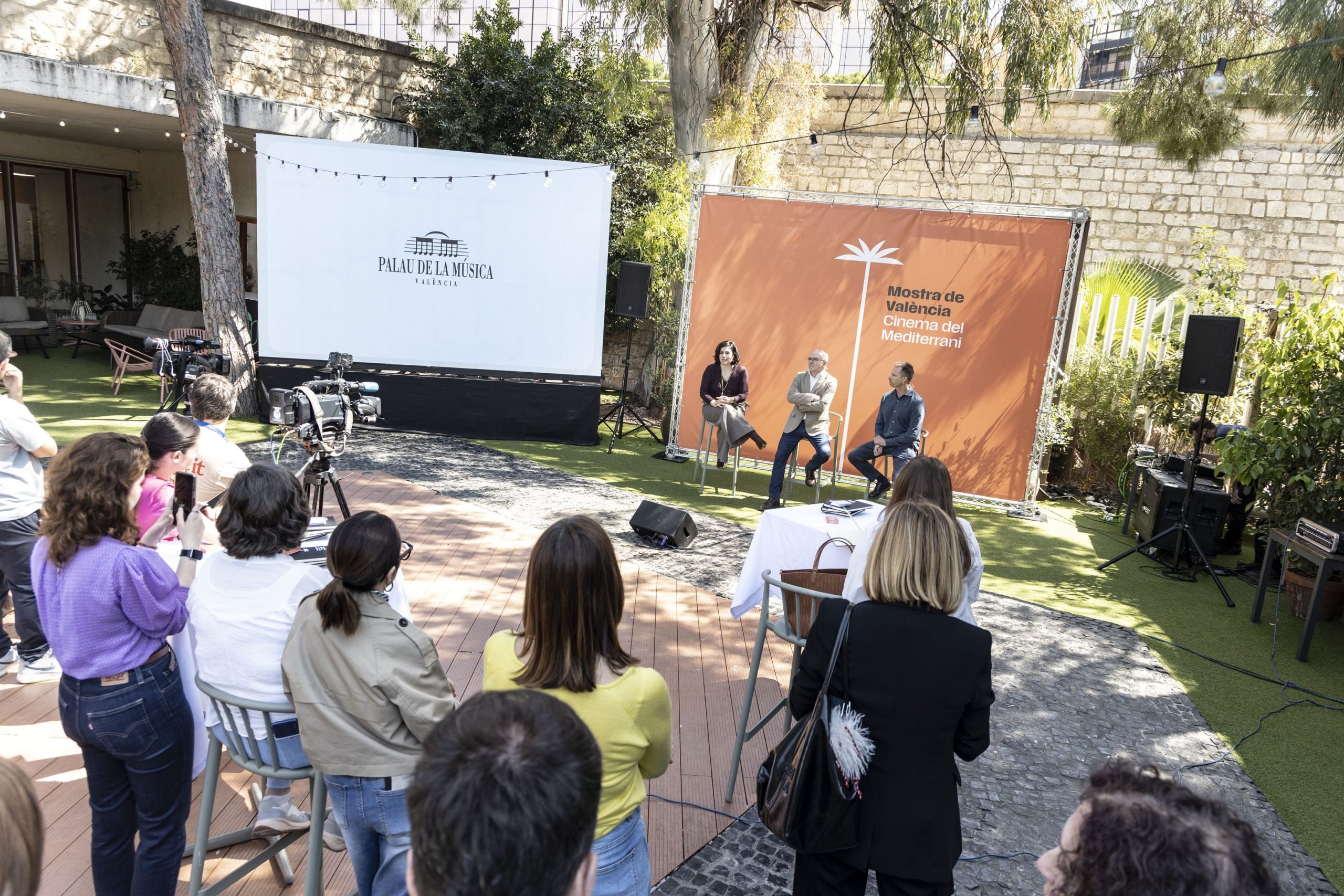 El director gerente del Palau, Vicente Llimerá, i la subdirectora de Cinematografía y Audiovisuales, Sara Mansanet, han presentado la nueva identidad gráfica de Mostra de València-Cinema del Mediterrani.