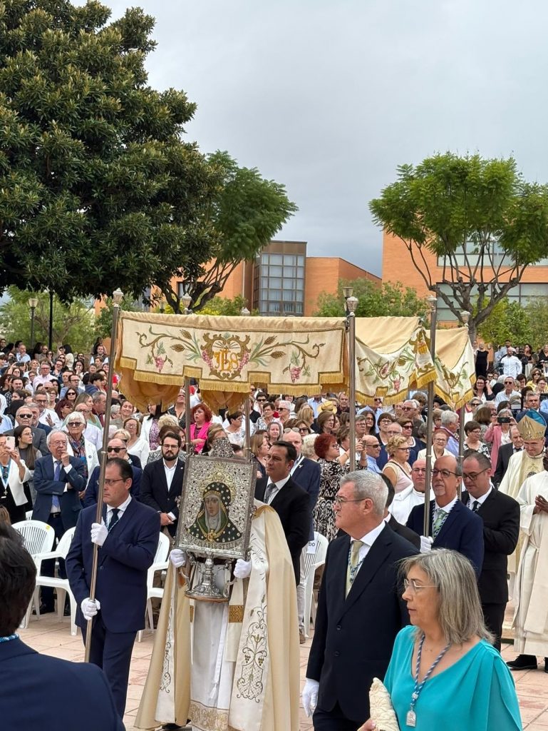 Este gesto, ha protagonizado un año lleno de actos en honor a la patrona del municipio y que han servido como preludio de este día tan esperado. El acto ha contado con la presencia del obispo de Orihuela-Alicante, José Ignacio Munilla quien ha presidido la misa solemne y ha colocado la corona sobre la imagen de la Virgen, reconociendo así siglos de devoción y tradición. Previamente era recibido por el alcalde y miembros de la corporación municipal para firmar en el Libro de Honor del Ayuntamiento dejando constancia del significado histórico de este día y recibir la insignia de Mutxamel como recuerdo de este día y de su visita a la ciudad.