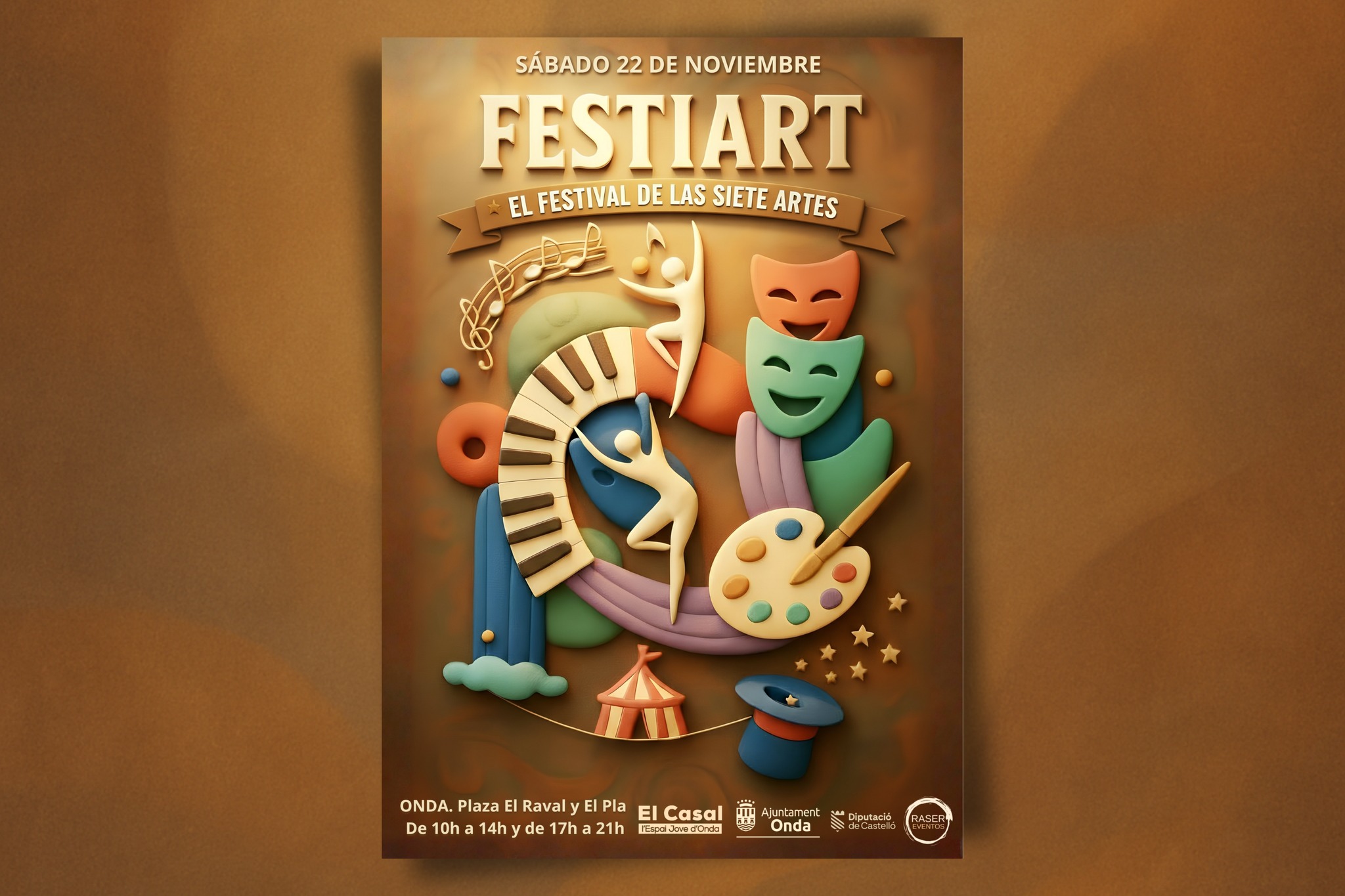 La concejalía de Juventud del Ayuntamiento de Onda, en colaboración con la productora Raser Eventos, ha creado ‘Festiart’, el primer festival de juventud de Onda, una cita que llenará el centro de la ciudad de música, danza, teatro, cine, pintura, magia y circo.