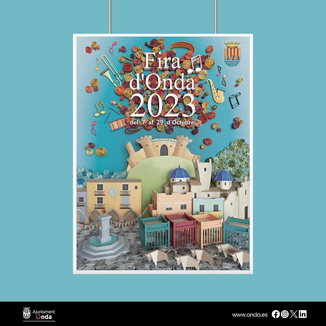 El Ayuntamiento de Onda ha presentado esta tarde el cartel anunciador de la Fira d’Onda 2023, cuya autora es la artista ondense Rebeca Brun. “Crea la Fira” es el lema del cartel ganador de la presente edición que representa varios motivos relacionados con las fiestas y el municipio como son la música, las tradiciones, el patrimonio o la naturaleza. Además, la obra muestra la esencia de Onda y de la Fira a través del fomento de la ecología.