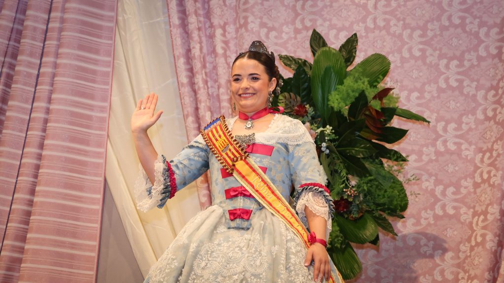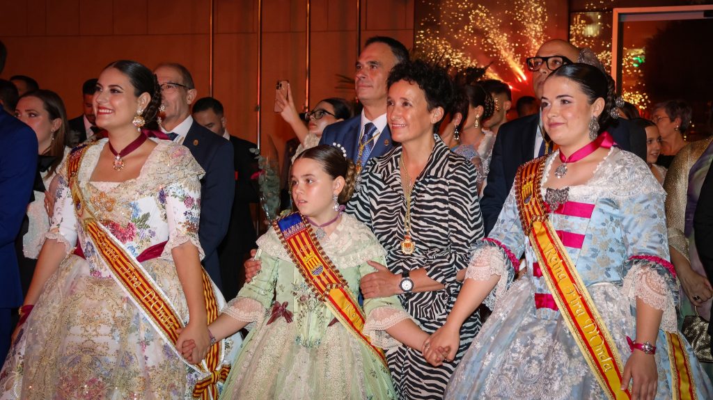 La reina de la Fira 2024, María García Taús, ha sido la encargada de ceder el testigo e imponer la banda a su sucesora. Asimismo, la alcaldesa de Onda, Carmina Ballester, y el concejal de Fiestas y Tradiciones, Sergio Puig, han entregado las insignias, de parte del Ayuntamiento, a la nueva reina y damas.