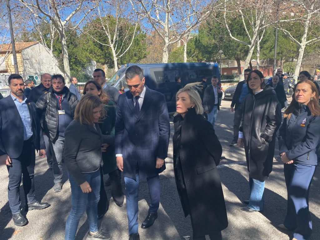 El presidente del Gobierno de España, Pedro Sánchez, ha visitado esta mañana la zona cero del incendio de Campanar donde ha mantenido una reunión con el president de la Generalitat, Carlos Mazón, y la alcaldesa de Valencia, María José Catalá, en el puesto avanzado de mando junto al resto de efectivos que trabajan en las labores de búsqueda de las víctimas.