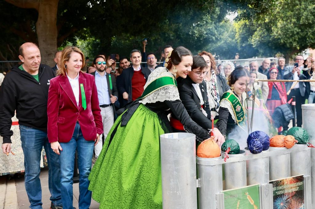Junto a las Reinas de las Fiestas, Paula Torres y Carla Ibáñez, han sido acompañadas por el Pregonero Infantil, David Sotos, que ha tenido el honor de encender la mecha de la mascletà.