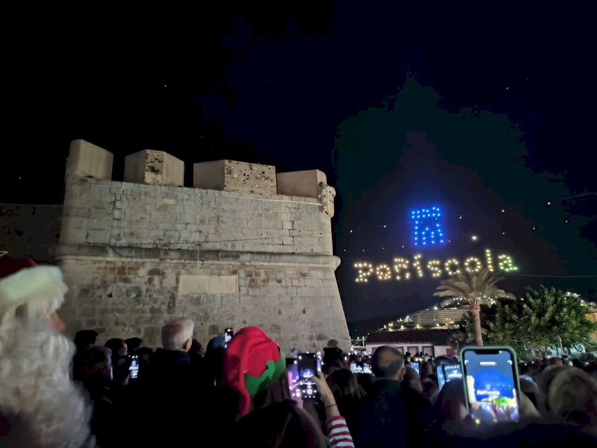 Tras el espectáculo lumínico en el cielo, los asistentes podrán recorrer las plazas y calles de la ciudad antigua descubriendo el trazado iluminado de este año, que incorporará, como ya hizo el pasado año, buena parte de las murallas renacentistas como gran reclamo visual, «la característica silueta de Peñíscola se verá enmarcada en luces navideñas» ha destacado Simó, recordando que el plato fuerte del alumbrado es la Plaza Santa María, donde la conocida marca de bombones, Ferrero Rocher, instaló su peculiar alumbrado.