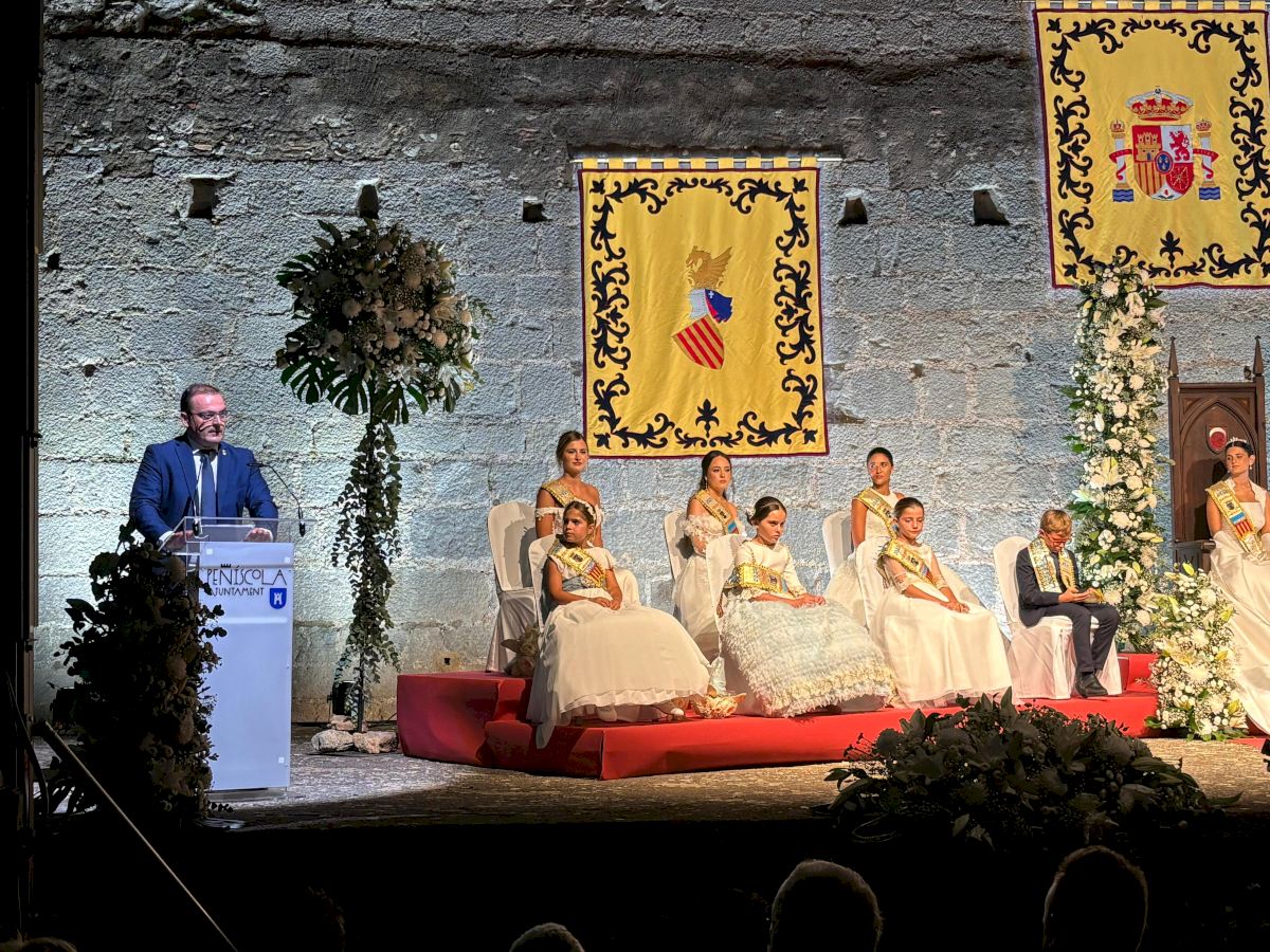 Peñíscola se reunió anoche para proclamar a su Reina, Damas y Caballeros de la ciudad. Al finalizar, los vecinos y vecinas de Peñíscola rindieron pleitesía a los nuevos representantes de los festejos con un baile de gala tras la coronación, con el que inauguraron los días dedicados a su Patrona, la Virgen de Ermitana.