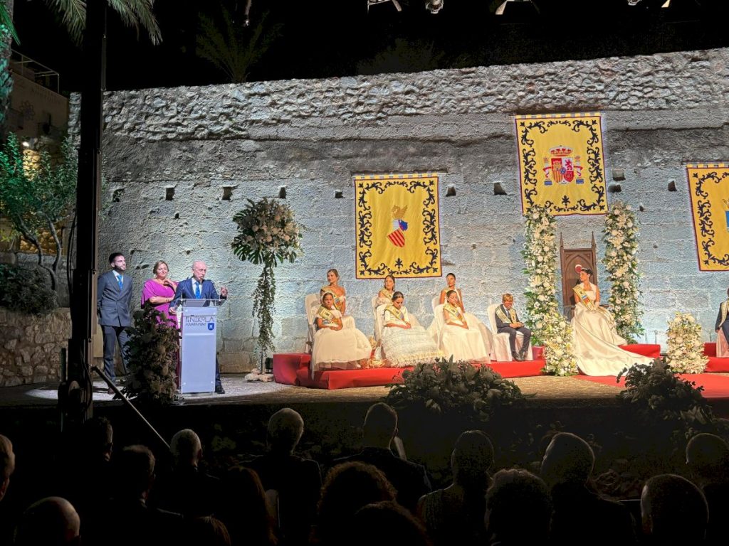 Martínez no pudo esconder su emoción por ser anfitrión en una noche tan mágica y agradeció el apoyo y la labor que realizan la Comisión de Fiestas, Comisión Taurina, Coordinadora de Peñas y todas las entidades locales que hacen posible la celebración de los festejos, así como al concejal de Fiestas, Ramón Simó, por la organización y gestión de los esperados actos. Su felicitación especial fue, como no podía ser de otro modo, para Blanca, que es ya Regina de los festejos.