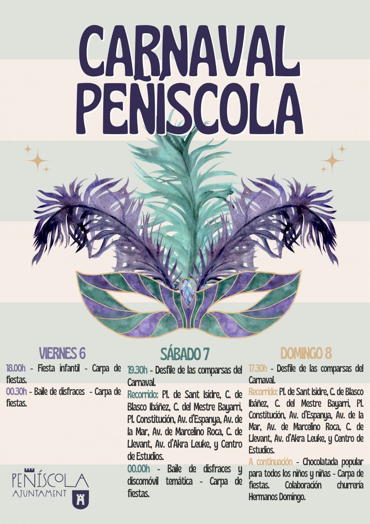 La concejalía de Fiestas del Ayuntamiento de Peñíscola calienta motores para la celebración de los actos previstos para Carnaval en el municipio. Los próximos días 6, 7 y 8 de febrero, la Ciudad en el Mar acogerá las distintas actividades previstas para la fiesta más desenfadada del año.