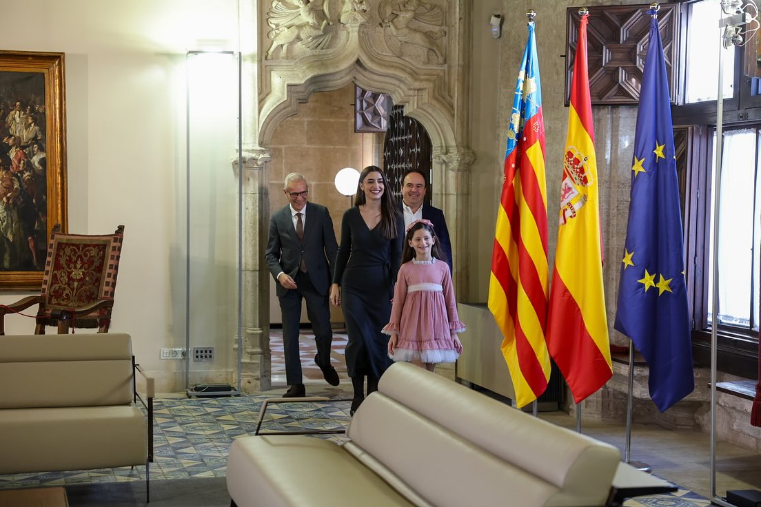 El president de la Generalitat, Juanfran Pérez Llorca, ha rebut en audiència la fallera major de València, Carmen Prades, i la fallera major infantil, Marta Mercader, de les quals ha realçat el seu paper com “com a ambaixadores de la cultura i tradició” de la Comunitat Valenciana.