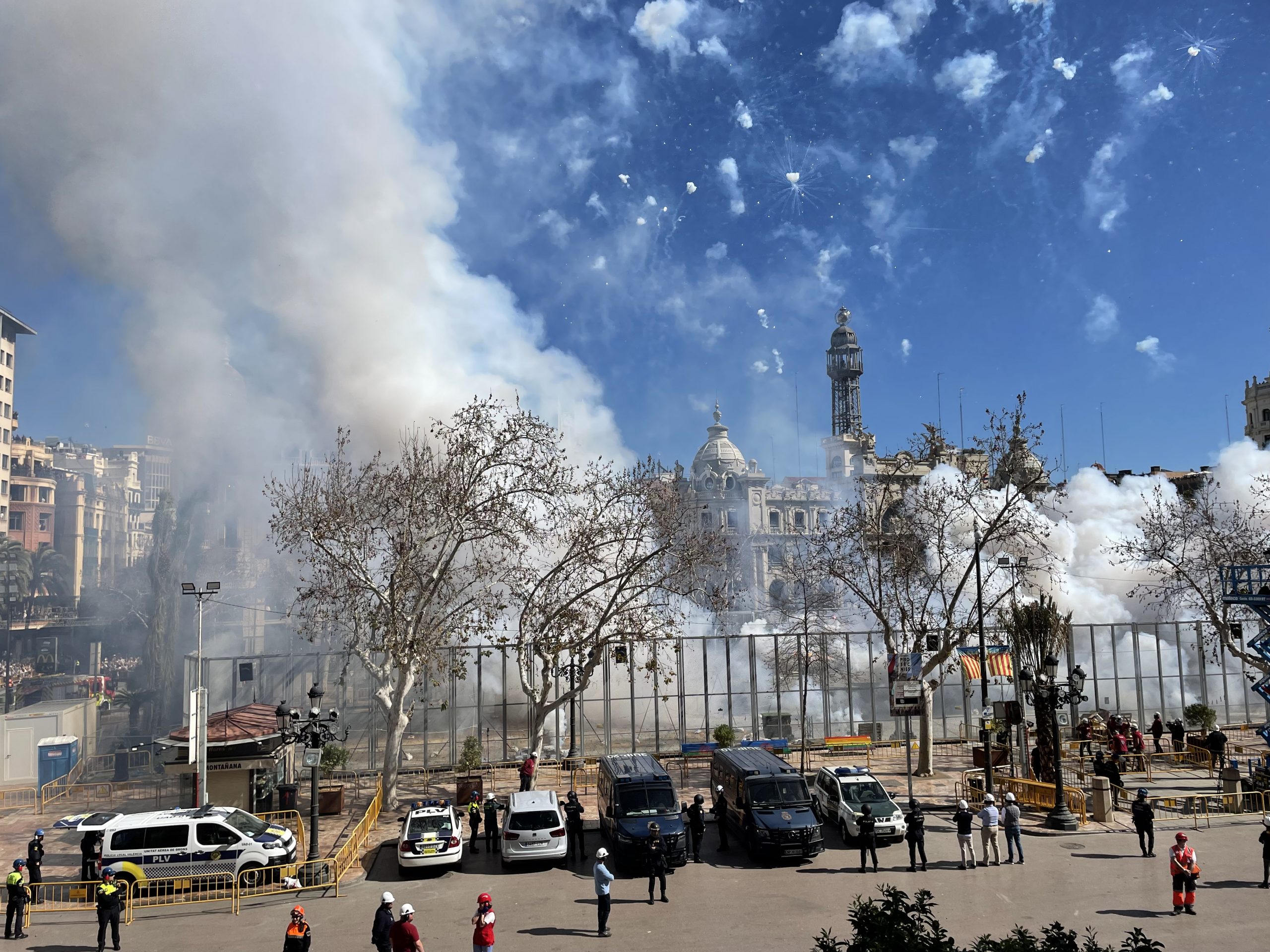 Desde el balcón del consistorio han podido disfrutar de este espectáculo, cuya duración ha sido de 5 minutos aproximadamente, representantes del ámbito educativo de la Comunitat Valenciana como la secretaria autonómica de Universidades, María Esther Gómez; los directores generales de Universidades y Ciencia, José Antonio Pérez y Rafael Sebastián, respectivamente; la directora del Institut Superior de Ensenyances Artístiques (ISEACV), Francisca Blanch; y el director general de la Agència Valenciana d’Avaluació i Prospectiva (AVAP), Javier Oliver.