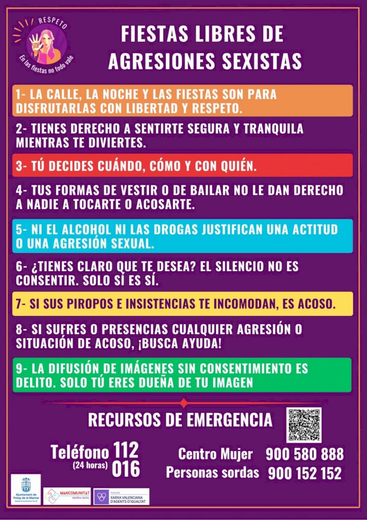 L’ Ajuntament de Polop instal·larà la nit del divendres al dissabte , a la Plaça de l’Ermita , un Punt Violeta , un espai segur destinat a la informació, prevenció i atenció davant qualsevol possible agressió sexual . Aquesta mesura forma part del compromís municipal per garantir unes festes segures i lliures de violència .